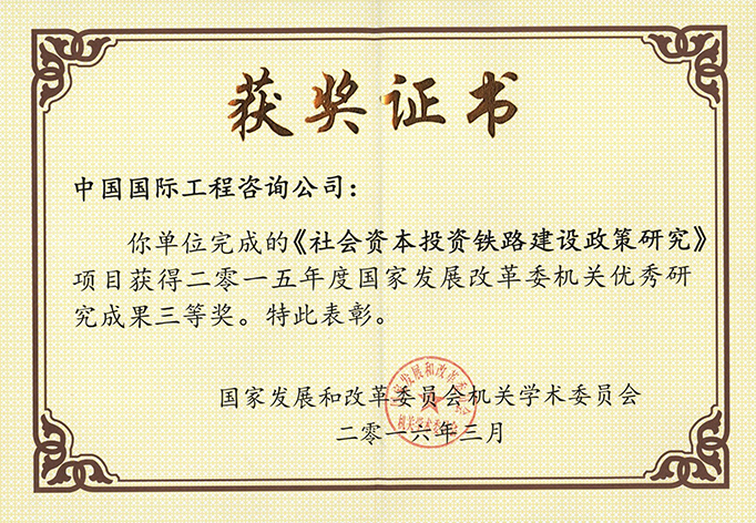 2015年度國家發展改革委機關優秀研究成果三等獎