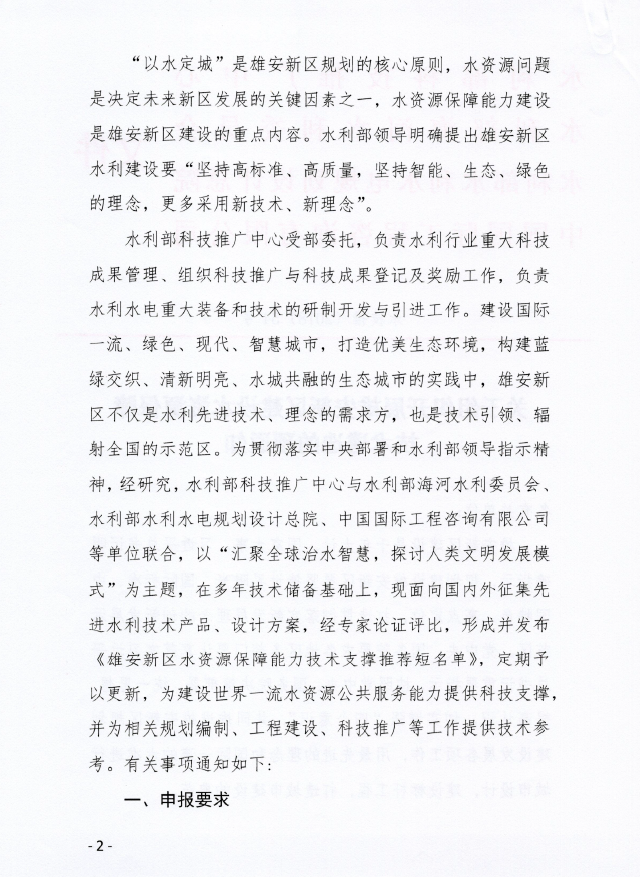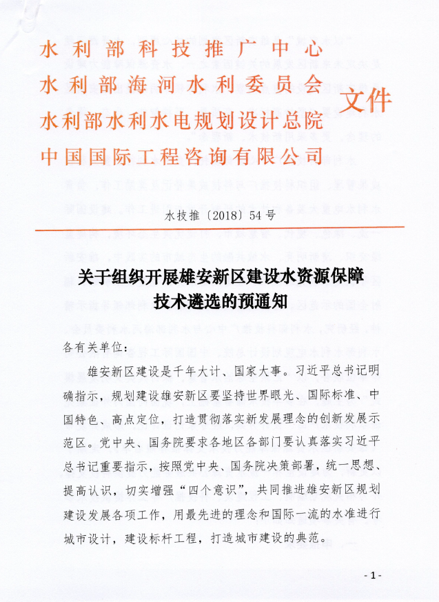 關于組織開展雄安新區(qū)建設水資源保障技術遴選的預通知
