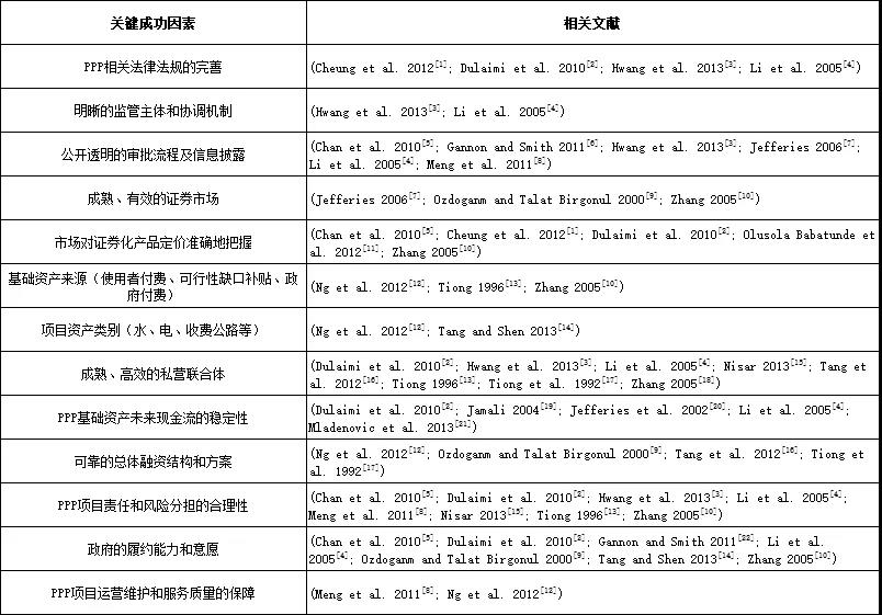 導 讀 2017年4月,上海證券交易所舉行了中國首批PPP項目資產支持證券的掛牌儀式,標志著國家發展改革委、中國證監會聯合推進的傳統基礎設施領域PPP項目資產證券化(ABS)產品正式落地。 受國家發展改革委委托,中國國際工程咨詢有限公司(中咨公司)研究中心承擔了我國首批PPP資產證券化項目的評估以及相關專題的研究工作,其中“政府和社會資本合作項目資產證券化研究”專題成果獲2018年度國家發展改革委優秀研究成果三等獎。本文基于關鍵成功因素(CSF)分析,搭建關于PPP資產證券化融資的可行性評價模型,并在首批PPP資產證券化項目評估實踐中應用驗證,是該專題研究的系列成果之一。由哥倫比亞大學、清華大學、中咨公司等機構專家合作撰寫完成的相關學術論文Assessment Framework for Financing Public-Private Partnership Infrastructure Projects through Asset-Backed Securitization于2019年11月刊載于工程管理領域國際頂級學術期刊《Journal of Management in Engineering》(SCI檢索)第35卷第6期,本文基于原論文由伍迪、陸征翻譯整理,有刪減與修改。近期,恰逢國家發展改革委、中國證監會正在推動基礎設施REITs試點相關工作,基礎設施REITs即以權益型ABS產品穿透取得底層資產的公募基金,希望本文研究內容對相關從業人員及相關政策制訂提供一定參考與借鑒。 摘要:關鍵成功因素(Critical Success Factors,CSF)分析是PPP領域研究與實踐的一個重要分支,其重要意義在于可以為PPP從業者提供更為量化且易于操作的總體評價指標體系。PPP資產證券化能否取得預期效果受多方面因素的影響,為了探索如何成功地通過PPP資產證券化利用資本市場進行融資,有必要對其關鍵成功因素進行深入研究。本文首先綜合使用文獻調研、案例分析、專家訪談等方法,系統識別PPP資產證券化的關鍵成功因素清單,在此基礎上對相關領域專家展開廣泛的問卷調研;然后采用主成分分析法(Principal Component Analysis,PCA)處理調研數據,分析識別主成分與各因素之間的關系,從問卷數據中挖掘出市場認可的、對融資成功與否產生重要影響的幾個關鍵維度;最后基于以上結論搭建關于PPP資產證券化融資的可行性評價模型。 關鍵詞:政府與社會資本合作(PPP);資產證券化(ABS);關鍵成功因素(CSF);基礎設施融資;主成分分析(PCA) 1. PPP資產證券化關鍵成功因素的識別 1.1 基于文獻調研識別關鍵成功因素 在世界范圍內PPP與資產證券化的結合仍屬新生事物,2016年底中國發布專項政策推廣相關工作,國際上針對這一融資創新的理論研究十分有限。因此,本文對PPP關鍵成功因素、基礎設施融資、資產證券化等相關領域分別進行文獻調研,從中篩選并形成適合作為PPP資產證券化關鍵成功因素的初步清單,如表1所示。 表1 基于文獻調研識別的關鍵成功因素 1.2 基于案例分析識別關鍵成功因素 成功案例經驗歸納。以世界范圍內成功PPP項目為分析對象,重點從世界銀行發布的引入私人資本的優質PPP項目中篩選案例,歸納成功經驗,從而完善PPP項目資產證券化關鍵成功因素。案例分析的研究過程可以應用比較分析法來突顯這些成功項目的相似點,而這些相似點則可以作為這些成功項目的重要特征而添加到成功因素清單中。在與世界銀行融資方面相關專家訪談的基礎上,本文選定了來自6個國家的不同成功案例來進行比較分析。通過成功案例經驗歸納發現:政策支持、成熟有效的資本市場、采購過程的透明度、完善的法律框架、合理的項目審批流程、清晰的監管機構與公共部門實施機構、合理的風險分擔機制、實力強大的聯合體、清晰的職能與責任劃分、社會資本的融資能力、項目收費的合理定價、運營階段可靠的服務等是促成PPP項目成功的重要因素。 失敗案例教訓總結。對失敗案例教訓的總結能夠更加全面地了解PPP資產證券化融資的關鍵節點和成功的必要條件。本文選擇的失敗案例包括發生違約或信用評級降低等事件的基礎設施收費收益權類資產證券化案例,包括某大橋通行費收入收益權專項資產管理計劃(違約)、某熱電電力上網收費權債權和供用熱合同債權資產支持專項計劃(降級)等。通過對失敗的基礎設施資產證券化案例教訓總結發現:缺乏差額補償資金來源、提供擔保的機構與被擔保的項目具有強關聯性、產業政策的變化與市場的不確定性、現金流的歸集與分配結構不清晰、違約事件發生后缺乏解決方案等是導致失敗的重要因素。 1.3 基于專家訪談識別關鍵成功因素 在以上研究基礎上,研究團隊在2016年12月至2017年1月期間,對來自于政府監管機構、行業職能部門、機構投資者、金融中介機構、建筑工程公司、咨詢公司、科研機構等不同部門的共計36名資深專家進行專家訪談,以便進一步驗證和補充關鍵成功因素清單。訪談對象不僅來自于PPP資產證券化的各個相關行業,同時兼顧了政府和社會資本方、兼顧了業界從業者和學術界專家。 1.4 PPP資產證券化關鍵成功因素清單 通過文獻調研、案例分析、專家訪談三個步驟互相補充和驗證后,最終形成具有25項關鍵成功因素的清單,如表2所示。本研究將在此清單基礎上設計問卷并分析各因素的關系,為PPP資產證券化可行性分析奠定基礎。 表2 PPP資產證券化關鍵成功因素 2. 基于CSF清單的問卷調研設計與實施 2.1 問卷設計 本研究調研問卷基于以上識別出的關鍵成功因素(CSF)清單(表2)進行設