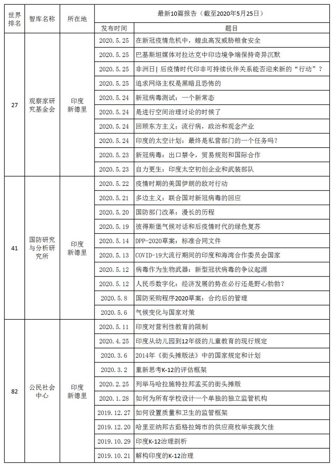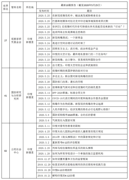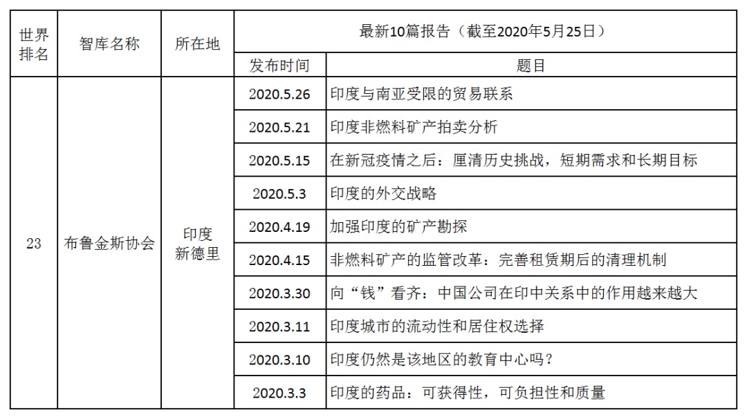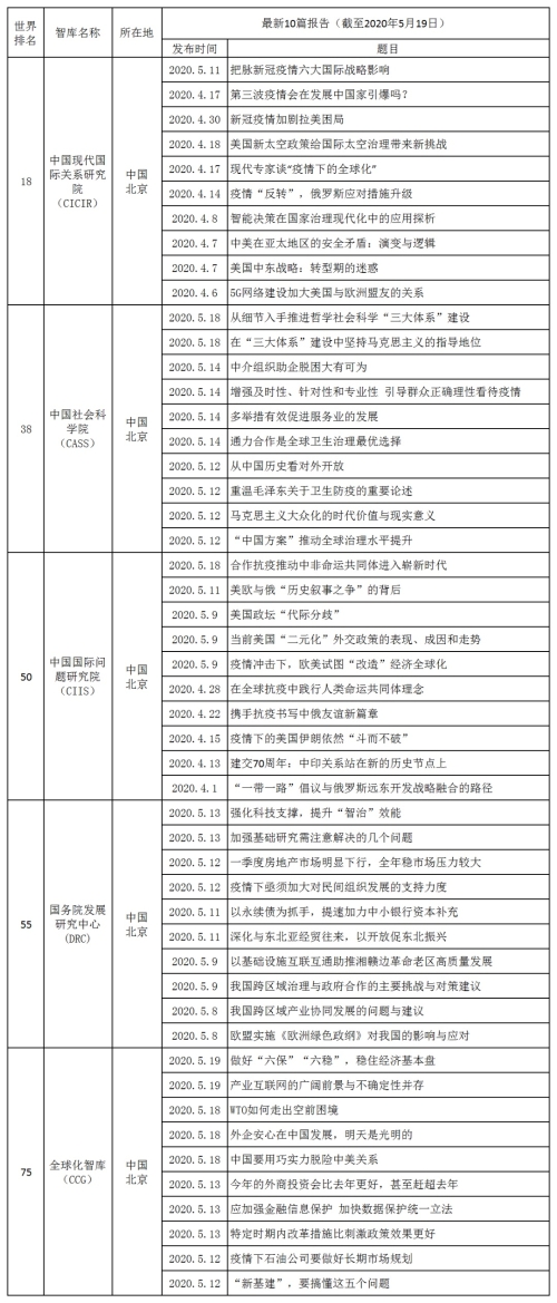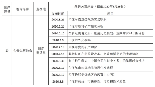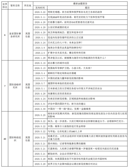 當今世界處于百年未有之大變局,智庫作為連接專業(yè)智慧與公共政策的橋梁,已成為國家治理和全球治理的重要支撐。對比我國和美、英、印等國智庫發(fā)展情況,可以發(fā)現(xiàn)我國智庫主題式研究和階段化研究明顯,持續(xù)跟蹤型研究少、系統(tǒng)化研究少。未來我國國家治理體系可能逐步邁入“政、智”一體化的治理新模式,伴隨我國國際地位和國際話語權的提升,建議我國智庫借鑒國際頂級智庫成果形成經(jīng)驗,在發(fā)展規(guī)劃層面和研究站位層面能夠與時俱進,抓住跳躍式發(fā)展契機,實現(xiàn)我國智庫在全球區(qū)位的高質(zhì)量發(fā)展。 一 智庫的內(nèi)涵及其在政府決策中的地位 (一)智庫的內(nèi)涵 智庫(Think Tank),顧名思義,是智慧力量、智慧資源的集結。在現(xiàn)代社會,智庫是決策者及決策機構的智囊團和思想庫。美國外交關系委員會主席理查德?哈斯將智庫的職能概括為五個方面:生產(chǎn)理念(Idea Factory)、供給人才(Providing Talent)、謀求共識(Convening Professionals)、教育公眾(Engaging the Public)和充當政府外交的“第二渠道”(Bridging Differences)。 影響力是智庫的生命力之所在,是智庫賴以生存和發(fā)展的核心競爭力。智庫一般以政策研究為內(nèi)核,通過內(nèi)部或公開渠道,為政府提供政治、經(jīng)濟、社會、科學、技術等多領域?qū)I(yè)咨詢建議,產(chǎn)生影響力。作為獨立于政府之外的第三方機構,智庫具備的政治職能和政治影響力成為智庫立身之本,也是智庫發(fā)展的最終目的。 (二)智庫在政府決策中的地位 二十一世紀以來,金融危機、自然災害、糧食危機、軍事沖突、貿(mào)易爭端、新冠疫情等全球性治理難題頻發(fā)。不論從短期還是從長期來看,世界權力結構、經(jīng)濟結構、社會結構均在發(fā)生劇烈變化,全球化發(fā)展的多樣性、復雜性和不確定性不斷增加,倒逼整個政治系統(tǒng)迅速推進國家治理體系及治理能力現(xiàn)代化、法制化、專業(yè)化。在此改革進程之中,參政、議政、輔政、問政等政治活動儼然已與智庫的智力支持密不可分。 世界上最主要的社會性權力有五種:政權、法權、財權、智權和德權。政權和法權是國家和政治所賦予的,財權是市場與資本所賦予的,智權取決于科學(包括自然科學和社會科學)、學術制度和社會理性,德權則取決于社會結構、道德崇敬和社會感性。其中,政權擁有者是政府與官員,屬于政治系統(tǒng);智權擁有者的典型代表是智庫與專家,屬于知識系統(tǒng)。 由于政治系統(tǒng)本身并不具備知識系統(tǒng)的專業(yè)技術儲備,因而政治系統(tǒng)的決策者需要配備知識系統(tǒng)的知識生產(chǎn)者作為外援。 一方面,智庫打破了政權和智權、政治系統(tǒng)和知識系統(tǒng)之間的藩籬,以智庫為橋梁,使得決策變成更為理性的行為,由政府官員與專家學者共同完成。實現(xiàn)政治理性與技術理性的完美契合,使得“政”與“智”的聯(lián)系以及“治理”能力與“智力”能力的結合愈加緊密,國家治理體系逐步邁入“政、智”一體化的治理新模式。縱觀世界各國現(xiàn)代化發(fā)展歷程,智庫在國家治理中一直發(fā)揮重要作用,并日益成為國家治理體系不可或缺的組成部分。 另一方面,智權的出現(xiàn),實質(zhì)上推動了決策與執(zhí)行的分離,是一種對政權的“改革”。在政策制定、執(zhí)行、監(jiān)督整個過程中,政與智的結合并不拘泥于以官為主,以專家為輔,有時甚至以專家為主,官員為輔。例如,在2020年初發(fā)生的新冠疫情“戰(zhàn)役”時期,大部分決策是由衛(wèi)生防疫和權威的醫(yī)學專家做出的,在這種特殊時期,專家的權威會被無形放大,成為政策制定的指引和導向。 二 全球智庫發(fā)展概況及其最新成果特點 (一)全球智庫總量近年增長情況 美國賓夕法尼亞大學智庫與公民社會項目組(TTCSP)編寫的《全球智庫報告》(Global Go To Think Tank Index Report),雖然評價方法和結果存在爭議,但一直被認為是最權威的全球智庫發(fā)展報告。根據(jù)2020年1月發(fā)布的《全球智庫報告2019》,對比2015至2019年發(fā)布的報告,全球智庫2014年至2019年的排名發(fā)生了較大變動,如表1所示。 由美國賓夕法尼亞大學智庫與公民社會項目組(TTCSP)編寫的年度《全球智庫報告》雖然在評價方法和結果上越來越產(chǎn)生爭議,但根據(jù)項目組對全球智庫機構建立的索引來看,全球智庫2008年是5465家,2019年是8248家,正在快速增長,智庫不僅在發(fā)達國家已為數(shù)眾多,而且在發(fā)展中國家也與日俱增。 表1 全球主要國家智庫數(shù)量近年變化情況 來源:《全球智庫報告》2014-2019。 從表1可以看出: 2014年至2017年,美國、中國、英國的智庫數(shù)量一致保持在全球前三。期間,美國智庫總量增長42家,增長率達到2.3%;中國增長83家,增長19.3%;英國增長157家,增長率高達54.7%。 2018年至2019年間,美國智庫總量沒有變動,中國智庫總量減少5家,英國減少123家。2018年,印度智庫異軍突起,總量增長73.7%,由293家增長到509家,超過中國和英國,躍居全球第二。2018年,阿根廷、俄羅斯的智庫總量也保持較快增長,增長率分別達到55.5%、108.7%。 (二)美國頂尖智庫及其研究成果 1.美國的全球智庫排名情況 作為全球智庫數(shù)量最多的國家,全球排名前十的智庫,美國常年占據(jù)5-6個席位,但具
