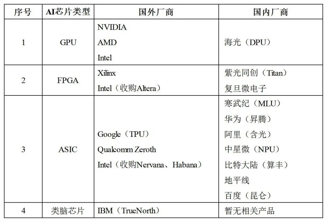 GPU:憑借GPU在當前人工智能市場的主導地位,NVIDIA在AI芯片市場一家獨大。AMD新發布的GPU產品已經實現了對主流AI框架軟件的良好支持,上升勢頭明顯。Intel也正在進行GPU研發。在國內,目前海光公司正在按進度推進類GPU(DPU)芯片研制,目前已經取得階段性進展。
