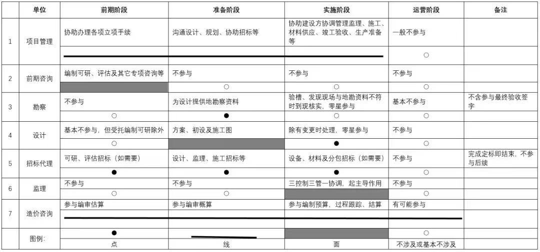【導(dǎo)讀】全過(guò)程工程咨詢已成為當(dāng)今工程領(lǐng)域的熱點(diǎn)話題。本文將從工程建設(shè)的過(guò)程切入,梳理全過(guò)程工程咨詢的主要發(fā)展模式和各類咨詢機(jī)構(gòu)業(yè)務(wù)專長(zhǎng),比較分析了標(biāo)準(zhǔn)型、全能型、模塊組合型、監(jiān)管型等組合模式的內(nèi)在特征,對(duì)全過(guò)程咨詢的團(tuán)隊(duì)負(fù)責(zé)人和牽頭單位提出了要求,認(rèn)為立足專業(yè)精神基礎(chǔ)之上的延伸與拓展,乃是全過(guò)程咨詢穩(wěn)定發(fā)展的基石。 一、從工程建設(shè)的過(guò)程說(shuō)起 工程建設(shè)是分階段進(jìn)行的。根據(jù)我國(guó)投資管理體制和項(xiàng)目建設(shè)程序,投資項(xiàng)目周期劃分為前期階段、準(zhǔn)備階段、實(shí)施階段和運(yùn)營(yíng)階段。 (一)前期階段 主要內(nèi)容包括:項(xiàng)目建議書(shū)(初步可行性研究)、可行性研究報(bào)告,咨詢?cè)u(píng)估。各種專項(xiàng)咨詢,如節(jié)能、環(huán)評(píng)、安評(píng)、社會(huì)穩(wěn)定評(píng)價(jià)以及水土保持方案等。 (二)準(zhǔn)備階段 從項(xiàng)目可行性研究報(bào)告審批或項(xiàng)目申請(qǐng)報(bào)告核準(zhǔn)起,到項(xiàng)目正式開(kāi)工建設(shè)止。這階段的主要工作有:工程設(shè)計(jì)、籌資融資、對(duì)外談判、招標(biāo)投標(biāo)、簽訂合同、征地拆遷及移民安置、施工準(zhǔn)備(場(chǎng)地平整、通路、通水、通電等)。 (三)實(shí)施階段 從投資項(xiàng)目的主體工程破土動(dòng)工起,到工程竣工交付運(yùn)營(yíng)止。這階段的主要工作有:建筑工程施工、設(shè)備采購(gòu)安裝、工程監(jiān)理、合同管理、生產(chǎn)準(zhǔn)備、試生產(chǎn)考核、竣工驗(yàn)收等。這是項(xiàng)目管理周期中工程量最大、投入的人力、物力和財(cái)力最多、工程管理難度最大的階段。 (四)運(yùn)營(yíng)階段 從項(xiàng)目竣工驗(yàn)收交付使用起,到運(yùn)營(yíng)一定時(shí)期(非經(jīng)營(yíng)性項(xiàng)目)或回收全部投資(經(jīng)營(yíng)性項(xiàng)目)止。這個(gè)階段一般跨度較長(zhǎng),主要工作有:正常生產(chǎn)運(yùn)營(yíng)、項(xiàng)目后評(píng)價(jià)(運(yùn)營(yíng)了3~5年之后)、償還貸款、更新改造等。 二、目前主流的工程管理模式 目前在工程領(lǐng)域通行的管理模式是建設(shè)方(業(yè)主)、施工方及咨詢方的三角模式,也是國(guó)際流行已久的做法。我國(guó)工程建設(shè)嘗嘗涉及國(guó)有資金,為了杜絕國(guó)有資產(chǎn)流失,確保國(guó)有資產(chǎn)的保值增值,政府對(duì)國(guó)有資金的使用有嚴(yán)格的監(jiān)管與審計(jì)要求,這種審計(jì)往往是全方位、全流程、全口徑的。監(jiān)管的對(duì)象主要是建設(shè)方,監(jiān)管的實(shí)施部門(mén)多為政府審計(jì)、監(jiān)察部門(mén)或其授權(quán)的管理機(jī)構(gòu),從而形成了中國(guó)特有的對(duì)國(guó)有投資項(xiàng)目的工程管理模式,詳見(jiàn)圖1。 圖1 國(guó)有資金投資項(xiàng)目的通行管理模式 在建設(shè)方、施工方與咨詢方的三角模式中,建設(shè)方、施工方的地位與責(zé)任非常明確,但在咨詢方的情況相對(duì)復(fù)雜。它們多由獨(dú)立的前期咨詢、勘察設(shè)計(jì)、招標(biāo)代理、監(jiān)理、項(xiàng)目管理及造價(jià)咨詢等各種企業(yè)構(gòu)成,均為獨(dú)立的法律主體,在各自的專業(yè)領(lǐng)域內(nèi),為建設(shè)提供各類技術(shù)或管理服務(wù),彼此的工作呈平行關(guān)系,很難找到一個(gè)明確的責(zé)任主體來(lái)對(duì)整個(gè)工程咨詢側(cè)負(fù)責(zé)。碎片化的工程咨詢存在諸多問(wèn)題。 1.責(zé)任主體不明。工程建設(shè)是個(gè)整體,涉及到質(zhì)量、進(jìn)度、投資的控制,安全、合同、信息的管理及多方面協(xié)調(diào)。由于分屬不同的咨詢企業(yè)負(fù)責(zé),一旦項(xiàng)目建設(shè)出現(xiàn)問(wèn)題,在工程咨詢方面很難找到具體的負(fù)責(zé)單位。 2.造成效率損失。整個(gè)工程實(shí)施鏈條上的前期咨詢、勘察、設(shè)計(jì)、監(jiān)理等屬于各自的主體,不能形成有效的銜接,增大了建設(shè)方的協(xié)調(diào)工作量,拖慢了工程進(jìn)度,也成為返工或變更的一大原因。 3.激化工作矛盾。以實(shí)施階段為例,監(jiān)理與造價(jià)咨詢單位都在現(xiàn)場(chǎng)為建設(shè)單位服務(wù),監(jiān)理更強(qiáng)調(diào)質(zhì)量與進(jìn)度,造價(jià)關(guān)心成本與價(jià)格,各管一塊使各方都只從自身角度考慮問(wèn)題,形成工作沖突,只好由建設(shè)方來(lái)平衡,不利于工程項(xiàng)目的順利進(jìn)行。 4.形成信息孤島。表面上看,各個(gè)咨詢單位都在投入精力努力收集信息,但從自身角度出發(fā)收集的每個(gè)階段或環(huán)節(jié)形成的信息,很難與其它階段與環(huán)節(jié)的共享或溝通,造成信息斷層和丟失,也影響后期的改造升級(jí)。 5.抗風(fēng)險(xiǎn)能力弱。碎片化的咨詢市場(chǎng)產(chǎn)生了眾多的小微公司,行業(yè)集中度不高,抗風(fēng)險(xiǎn)能力較低,整體水平很難再上臺(tái)階,同進(jìn)也造成了從業(yè)人員專業(yè)面狹窄,與其它項(xiàng)目參與方易生摩擦。 三、全過(guò)程工程咨詢順應(yīng)了時(shí)代的要求 為克服碎