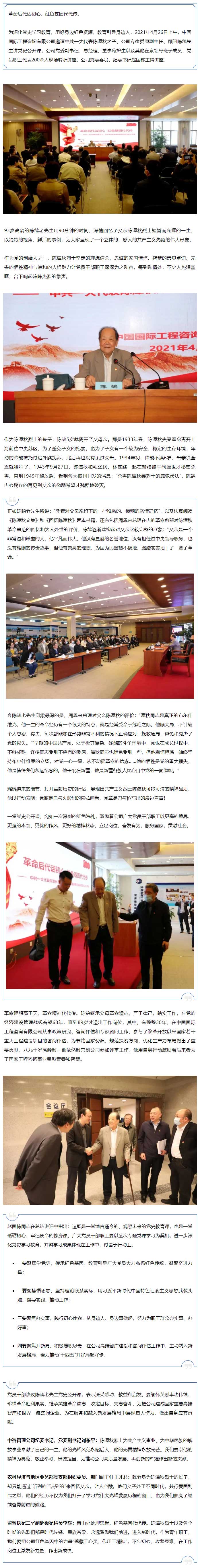 中咨公司邀請中共一大代表陳潭秋之子、公司專家委原副主任陳鵠講黨課