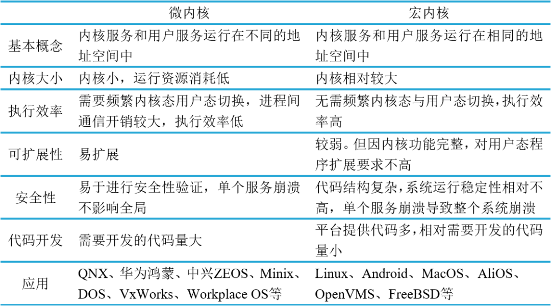 內核是操作系統的核心部分,提供內存管理、文件管理、CPU調度管理、輸入輸出管理等功能,管理系統的各種資源。內核可以按照內核結構、實時性以及對內核改造程度三個維度進行分類,按照內核結構劃分,分為微內核和宏內核;按照實時性劃分,分為實時操作系統和分時操作系統;按照對內核改造程度劃分,分為基礎型、定制型和ROM型。