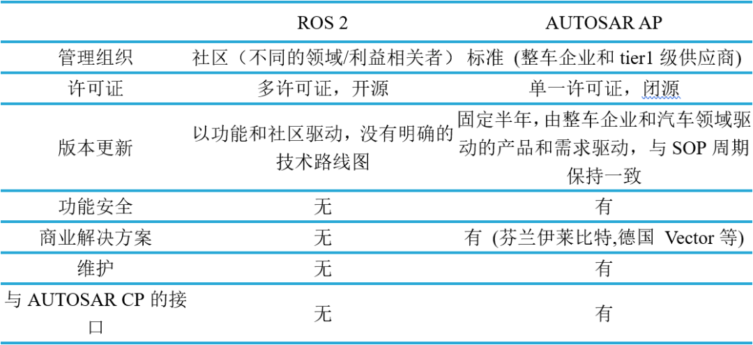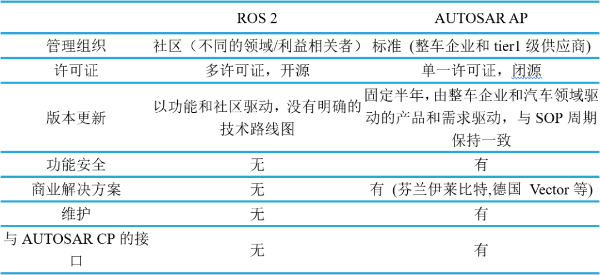 隨著智能駕駛技術的不斷發展,ROS 2(機器人操作系統)作為能夠支持Linux、Windows、Mac、RTOS等操作系統的實時系統,已逐漸應用于自動駕駛中間件中。AUTOSAR AP與ROS 2對比如表6所示。