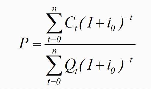 式中,Ct為項目包括投資在內的各期費用,一般為財務分析的投資、經營成本估算及維持運營投資,Qt為第t期的產出供應消費的量,i0為折現率。
