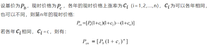 時價是指投入物或產出物在各年的實際價格或當前價格,同時包含了相對價格變動和絕對價格變動,以當時的價格水平表示。以基價為基礎,按照預計的各種貨物的價格上漲率(稱為現時價格上漲率)可以分別求出其在計算期內任何一年的現時價格。假定貨物A的現時價格上漲率為3%,則在基年的基價100元的基礎上,第二年的現時價格應為[100×(1+3%)],即103元。