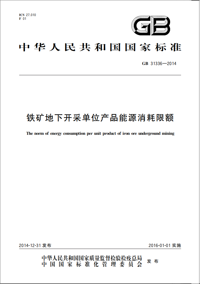 本標(biāo)準(zhǔn)適用于鐵礦地下開(kāi)采單位產(chǎn)品能耗的計(jì)算、考核及對(duì)新建項(xiàng)目的能耗控制。