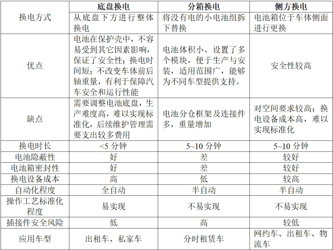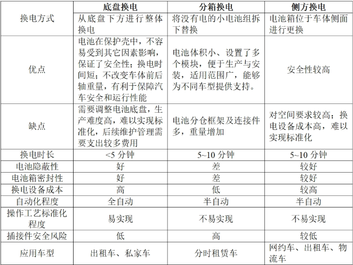 乘用車換電站技術路線按電池安裝位置可分為底盤換電、側方換電、分箱換電。其中,底盤換電由于其換電時間短,不改變車體前后軸重量,能夠保障汽車安全,已成為主流的換電方式。