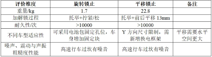 表1 旋轉鎖止和前后平移鎖止機構性能對比