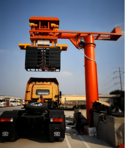 整體單側點換電包括前預備、上車和后預備階段。在前預備階段,堆垛機抓取新電池并送到裝卸中轉站上的伸縮吸盤機構上,伸縮吸盤機構將新電池放置在伸縮盤上。在上車階段,車輛開上駐車平臺后,導正機構的導正軸把車輛推動到居中位置,舉升機構將車輛抬起,裝卸中轉站的空置伸縮盤卸下商用車/重卡內的電池,裝有新電池的伸縮盤通過抓取吸盤套件將新電池放入車輛電池倉中,完成更換電池。在后預備階段,伸縮吸盤機構將卸下的電池包送到堆垛機中,完成換電流程,其中前預備階段和后預備階段可在一個工作工序中實現。
