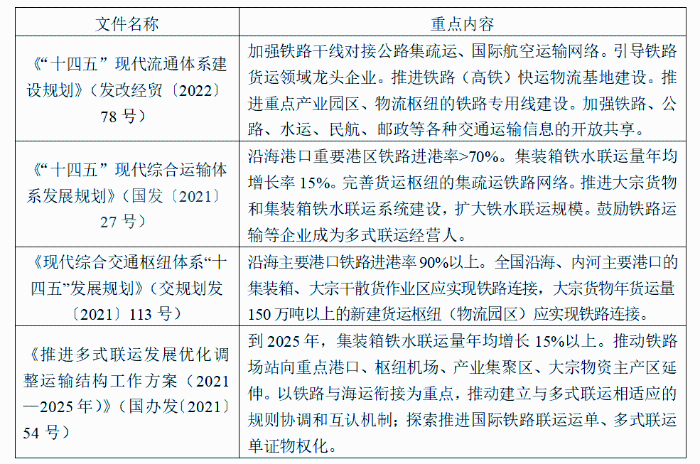 表1  “十四五”期間關于鐵路多式聯運的文件