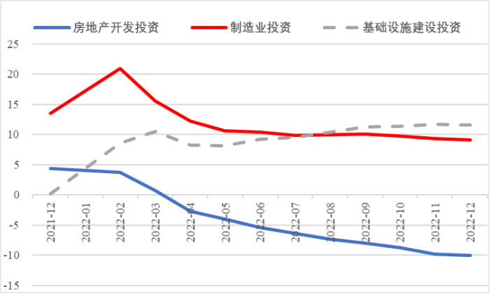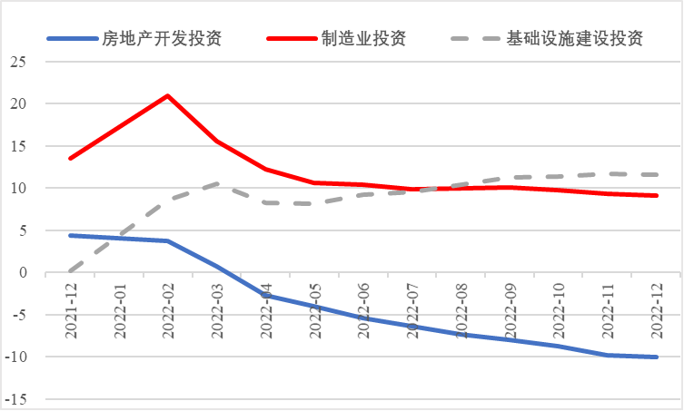 2022年,面對(duì)復(fù)雜嚴(yán)峻的國(guó)際環(huán)境和國(guó)內(nèi)疫情挑戰(zhàn),我國(guó)投資整體表現(xiàn)較強(qiáng)韌性,對(duì)穩(wěn)定經(jīng)濟(jì)基本盤(pán)發(fā)揮了壓艙石作用。基礎(chǔ)設(shè)施和部分制造業(yè)成為穩(wěn)投資的重點(diǎn)領(lǐng)域,中西部地區(qū)投資增長(zhǎng)動(dòng)能強(qiáng)勁。同時(shí),制造業(yè)承壓加劇、房地產(chǎn)投資下行、地方債高壓、社融需求走弱等突出問(wèn)題制約投資持續(xù)穩(wěn)定增長(zhǎng),穩(wěn)投資壓力仍然較大。做好2023年投資促進(jìn)工作,關(guān)鍵是把擴(kuò)大有效投資同優(yōu)化供給結(jié)構(gòu)有機(jī)結(jié)合起來(lái),持續(xù)擴(kuò)大高技術(shù)產(chǎn)業(yè)投資,多舉措穩(wěn)定房地產(chǎn)投資,更好發(fā)揮政府投資的引導(dǎo)作用,充分釋放社會(huì)投資需求潛能。 一、固定資產(chǎn)投資整體運(yùn)行情況 (一)整體投資韌性超出預(yù)期,民間投資呈下行趨勢(shì) 2022年1—12月,我國(guó)固定資產(chǎn)投資(不含農(nóng)戶,下同)572138億元,同比增長(zhǎng)5.1%。一季度投資增速達(dá)到9.3%的年內(nèi)高點(diǎn),上半年、前三季度分別降至6.1%、5.9%,年初投資增速較高的重要原因是2022年專項(xiàng)債部分限額提前下達(dá)等系列政策發(fā)揮效果,之后受國(guó)外地緣政治沖突、國(guó)內(nèi)疫情多點(diǎn)散發(fā)等因素影響,投資增速有所下降,但降幅逐季收窄。一季度、上半年、前三季度、全年固定資產(chǎn)投資增速分別較同期國(guó)內(nèi)生產(chǎn)總值增速高了4.5個(gè)、3.6個(gè)、2.9個(gè)和2.1個(gè)百分點(diǎn),投資成為當(dāng)前穩(wěn)定宏觀經(jīng)濟(jì)大盤(pán)的關(guān)鍵力量。 圖1 全國(guó)固定資產(chǎn)投資增速 (累計(jì)同比,%) 數(shù)據(jù)來(lái)源:國(guó)家統(tǒng)計(jì)局 1—12月,我國(guó)固定資產(chǎn)投資三年平均增速為4.3%,低于2019年同期1.1個(gè)百分點(diǎn),全面恢復(fù)到疫情前水平仍需一定時(shí)間。尤其是民間投資受疫情沖擊較為嚴(yán)重,復(fù)蘇難度較大。一季度、上半年、前三季度、全年民間投資分別同比增長(zhǎng)8.4%、3.5%、2%、0.9%,低于整體投資增速0.9個(gè)、2.6個(gè)、3.9個(gè)、4.2個(gè)百分點(diǎn),與整體投資增速的差距逐季拉大。從占比看,截至12月底民間投資累計(jì)占固定資產(chǎn)投資的比重已降至54.2%,低于2019年同期2.2個(gè)百分點(diǎn)。 圖2 民間投資增速及占比(%) 數(shù)據(jù)來(lái)源:國(guó)家統(tǒng)計(jì)局,Wind數(shù)據(jù)庫(kù) (二)基礎(chǔ)設(shè)施、制造業(yè)投資支撐作用明顯,房地產(chǎn)市場(chǎng)持續(xù)低迷 制造業(yè)投資在外需帶動(dòng)和政策支撐下展現(xiàn)較強(qiáng)韌性,2022年1—12月制造業(yè)投資同比增長(zhǎng)9.1%,比整體投資高4個(gè)百分點(diǎn)。在內(nèi)需受疫情影響明顯收縮的情況下,制造業(yè)投資超預(yù)期增長(zhǎng)很大程度上得益于外需對(duì)出口的拉動(dòng)。我國(guó)全年貨物出口額累計(jì)同比增長(zhǎng)10.5%,裝備制造、消費(fèi)品制造等領(lǐng)域海外訂單持續(xù)旺盛,機(jī)電產(chǎn)品占進(jìn)出口總額的49.1%,汽車出口大幅增長(zhǎng)82.2%。技改投資繼續(xù)發(fā)揮對(duì)制造業(yè)投資的拉動(dòng)作用。1—11月,制造業(yè)企業(yè)技改投資同比增長(zhǎng)9.1%,占全部制造業(yè)投資的比重達(dá)40.9%。 基礎(chǔ)設(shè)施投資在增加政策性開(kāi)發(fā)性金融工具額度、用好專項(xiàng)債等融資支持政策以及各地區(qū)各部門(mén)積極貫徹落實(shí)穩(wěn)增長(zhǎng)系列政策推動(dòng)下,連續(xù)8個(gè)月回升,1—12月同比增長(zhǎng)9.4%,高于全部投資增速4.3個(gè)百分點(diǎn)。其中,水利管理業(yè)投資和公共設(shè)施管理業(yè)投資分別大幅增長(zhǎng)13.6%、10.1%。 表1 1-12月我國(guó)各行業(yè)固定資產(chǎn)投資情況 2022年受需求走弱影響,房地產(chǎn)開(kāi)發(fā)投資增速持續(xù)放緩,一季度僅同比增長(zhǎng)0.7%,二季度開(kāi)始滑落至負(fù)增長(zhǎng)區(qū)間。1—12月我國(guó)房地產(chǎn)開(kāi)發(fā)投資同比下降10%,降幅較前三季度、上半年分別擴(kuò)大2個(gè)、4.6個(gè)百分點(diǎn),跌幅持續(xù)加深,拖累固定資產(chǎn)投資整體增長(zhǎng)。房企土地購(gòu)置費(fèi)、施工面積、新開(kāi)工面積等指標(biāo)均出現(xiàn)持續(xù)大幅下降。1—12月,房地產(chǎn)開(kāi)發(fā)景氣指數(shù)均位于100以下,且自2月以來(lái)持續(xù)走低。 圖3 三大領(lǐng)域固定資產(chǎn)投資增速 (累計(jì)同比,%) 數(shù)據(jù)來(lái)源:國(guó)家統(tǒng)計(jì)局,Wind數(shù)據(jù)庫(kù) 高技術(shù)產(chǎn)業(yè)投資引領(lǐng)作用持續(xù)增強(qiáng)。在投資整體下行壓力加大的情況下,高技術(shù)產(chǎn)業(yè)投資逆勢(shì)而上,穩(wěn)投資引領(lǐng)作用持續(xù)顯現(xiàn)。2022年高技術(shù)產(chǎn)業(yè)投資同比增長(zhǎng)18.9%,比全部投資增速高13.8個(gè)百分點(diǎn)。分類別看,高技術(shù)制造業(yè)投資同比增長(zhǎng)22.2%,比制造業(yè)整體投資高了13.1個(gè)百分點(diǎn),其中電子及通信設(shè)備制造業(yè)投資增長(zhǎng)27.2%,醫(yī)療儀器設(shè)備及儀器儀表制造業(yè)投資增長(zhǎng)27.6%,電子、醫(yī)藥制造業(yè)投資大幅增加;高技術(shù)服務(wù