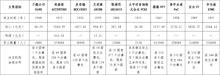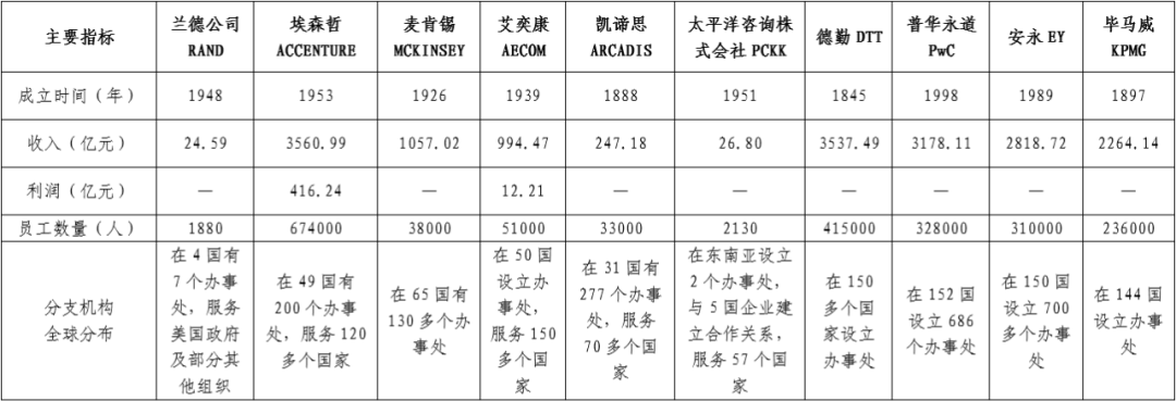 表2 世界一流咨詢企業2021年經營規模情況表