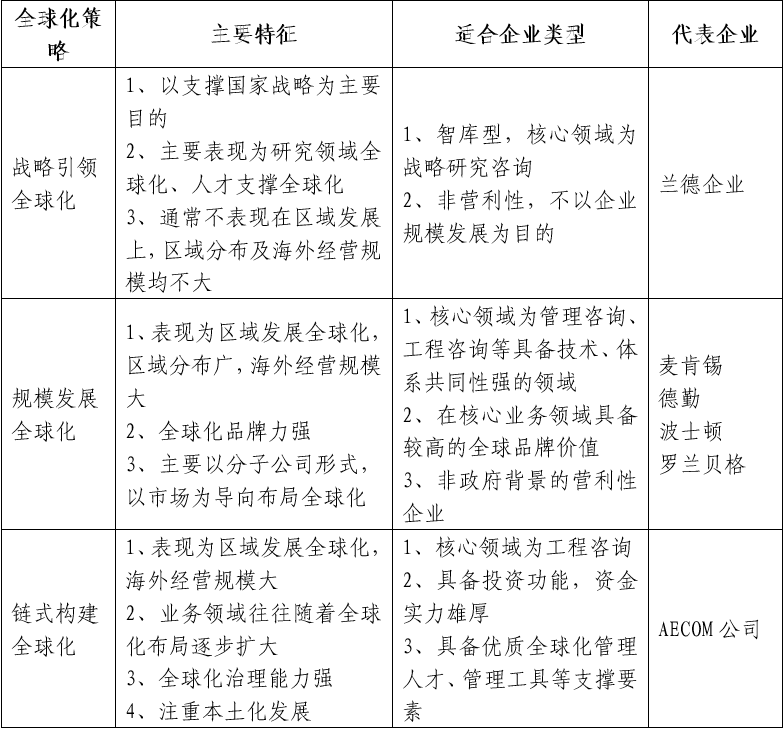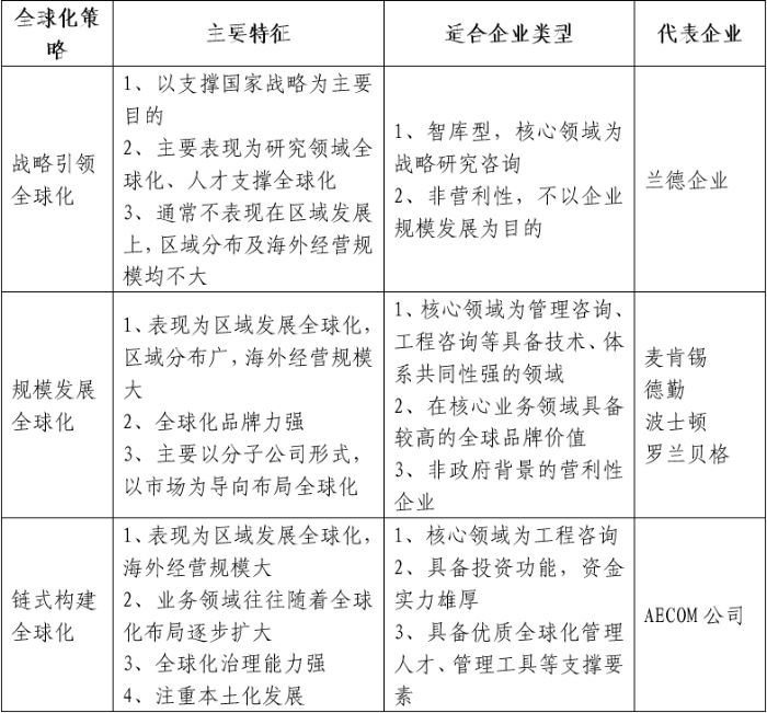 表3  咨詢企業三類全球化策略