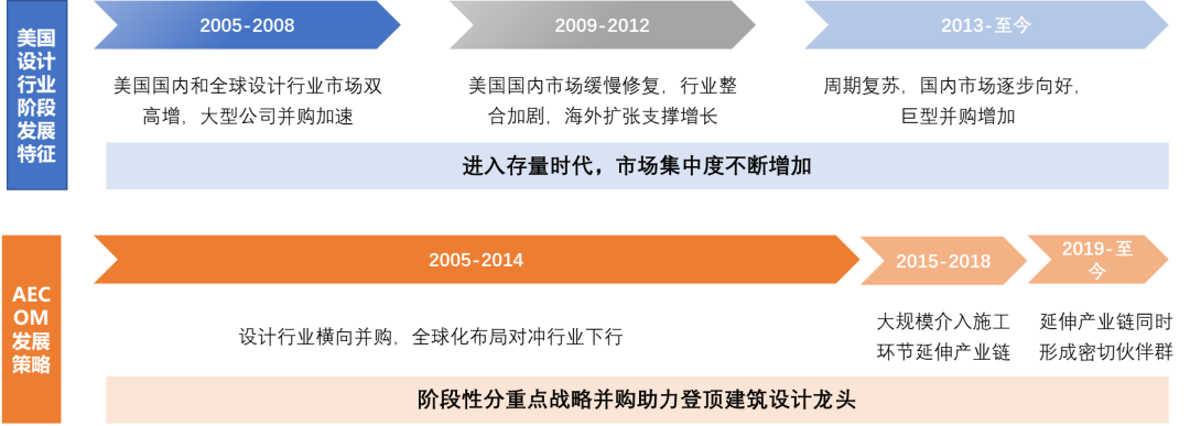 截至2020年底,艾奕康的辦公室遍布全球分布于七大洲150多個國家,有超過5萬名員工。艾奕康以其對咨詢行業的敏銳眼光和策略執行魄力利用30年的時間登頂全球建筑設計龍頭,其國際化戰略的成功伴隨著對美國及全球咨詢行業特別是設計行業的深度解讀,并結合不同階段行業特征制定發展策略。