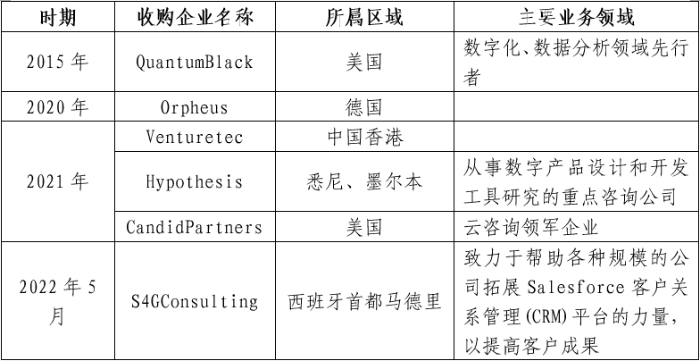 表5  麥肯錫公司主要收購企業