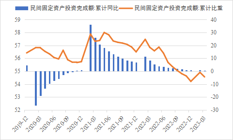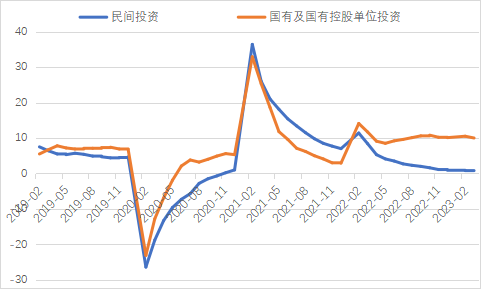 2023年一季度生產(chǎn)需求明顯改善,市場預(yù)期加快好轉(zhuǎn),經(jīng)濟(jì)企穩(wěn)勢(shì)頭開始顯現(xiàn)。固定資產(chǎn)投資穩(wěn)定增長為一季度經(jīng)濟(jì)平穩(wěn)運(yùn)行提供了重要支撐,各地都將穩(wěn)投資作為重要工作,有效應(yīng)對(duì)外部不確定性因素沖擊。隨著供需循環(huán)進(jìn)一步暢通,疊加前期政策效應(yīng)等多方面積極因素,擴(kuò)大有效投資仍有潛力和空間。下階段,應(yīng)聚焦重點(diǎn)產(chǎn)業(yè)、重要產(chǎn)業(yè)鏈、民生領(lǐng)域等精準(zhǔn)發(fā)力,多渠道籌措項(xiàng)目建設(shè)資金,更好發(fā)揮投資對(duì)于調(diào)結(jié)構(gòu)、促轉(zhuǎn)型的帶動(dòng)作用,為經(jīng)濟(jì)高質(zhì)量發(fā)展打下堅(jiān)實(shí)基礎(chǔ)。 一、固定資產(chǎn)投資整體運(yùn)行情況 1.整體投資保持平穩(wěn)增長態(tài)勢(shì) 2023年1-3月,我國固定資產(chǎn)投資(不含農(nóng)戶,下同)10782億元,同比增長5.1%,較國內(nèi)生產(chǎn)總值增速高了0.6個(gè)百分點(diǎn),與2022年全年增速持平,固定資產(chǎn)投資增速仍保持高位。從投資構(gòu)成看,一季度建安工程、設(shè)備工器具購置、其他費(fèi)用分別增長4.1%、4.2%、8.2%。建安工程、設(shè)備工器具購置保持較快增長,人工、材料、施工機(jī)具使用以及設(shè)備購置等費(fèi)用增速加快,反映了在穩(wěn)投資系列政策推動(dòng)下,新上項(xiàng)目較多、新上項(xiàng)目中設(shè)備購置量增多、企業(yè)更新改造力度加大。 圖1 全國固定資產(chǎn)投資增速(%) 數(shù)據(jù)來源:國家統(tǒng)計(jì)局 2.民間投資意愿和能力仍待恢復(fù) 2023年1-3月,民間固定資產(chǎn)投資為58532億元,同比增長0.6%,較1-2月低了0.2個(gè)百分點(diǎn),低于投資整體增速4.5個(gè)百分點(diǎn),仍處于低位運(yùn)行狀態(tài)。從季度波動(dòng)看,民間固定資產(chǎn)投資的增速已由2022年第一季度的8.4%持續(xù)下滑,下滑幅度較大。民間固定資產(chǎn)投資占比進(jìn)一步萎縮,跌至2011年以來的次低點(diǎn),僅為54.56%。 圖2 民間投資增速及占比(%) 數(shù)據(jù)來源:國家統(tǒng)計(jì)局,Wind數(shù)據(jù)庫 近年來,受疫情反復(fù)、成本上升、內(nèi)需收縮等因素影響,民間投資動(dòng)力和能力普遍偏弱,民營企業(yè)面臨較嚴(yán)重的需求收縮。2022年開始,國有及國有控股單位投資增速超過民間投資增速,且差距逐漸拉大。2023年1-3月,國有及國有控股單位同比增長10%,較民間投資增速高了9.4個(gè)百分點(diǎn)。1-2月,內(nèi)資企業(yè)中的國有企業(yè)、集體企業(yè)和股份合作企業(yè)固定資產(chǎn)投資分別同比增長17.8%、20.5%和17.1%。 圖3 民間投資、國有及國有控股單位投資增速(%) 數(shù)據(jù)來源:國家統(tǒng)計(jì)局,Wind數(shù)據(jù)庫 3.基建投資加力提效,制造業(yè)投資結(jié)構(gòu)持續(xù)優(yōu)化 2023年1-3月,制造業(yè)投資保持較快增長,基建投資增速有所提升,房地產(chǎn)投資增速仍為負(fù)值,但降幅明顯收窄。基礎(chǔ)設(shè)施投資在增加政策性開發(fā)性金融工具額度、用好專項(xiàng)債等融資支持政策以及各地區(qū)各部門積極貫徹落實(shí)穩(wěn)增長系列政策推動(dòng)下,效果逐步顯現(xiàn),一季度基礎(chǔ)設(shè)施投資同比增長8.8%,高于全部投資5.7個(gè)百分點(diǎn),是大類投資中增長最快的領(lǐng)域。基建投資呈現(xiàn)結(jié)構(gòu)性特征,資金投向更加聚焦。一季度水利管理業(yè)投資增長10.3%,公共設(shè)施管理業(yè)投資增長7.7%,道路運(yùn)輸業(yè)投資增長8.5%,鐵路運(yùn)輸業(yè)投資增長17.6%。基建的推進(jìn)速度與資金的到位情況呈強(qiáng)相關(guān)性,從政策支持領(lǐng)域看,資金重點(diǎn)流向了市政及產(chǎn)業(yè)園區(qū)基礎(chǔ)設(shè)施、社會(huì)事業(yè)、交通基礎(chǔ)設(shè)施、保障性安居工程、農(nóng)林水利、生態(tài)環(huán)保、倉儲(chǔ)物流基礎(chǔ)設(shè)施等領(lǐng)域,聚焦于基礎(chǔ)設(shè)施“補(bǔ)短板”以及新基建“提質(zhì)量”,確保了資金精準(zhǔn)灌溉。 表1 1-3月我國各行業(yè)固定資產(chǎn)投資情況 2023年一季度,國內(nèi)需求逐步擴(kuò)大,經(jīng)營主體預(yù)期好轉(zhuǎn),制造業(yè)投資同比增長7%,比整體投資高1.9個(gè)百分點(diǎn)。其中,高技術(shù)制造業(yè)投資同比增長15.2%,對(duì)制造業(yè)投資拉動(dòng)作用明顯,表明制造業(yè)轉(zhuǎn)型升級(jí)態(tài)勢(shì)持續(xù)。制造業(yè)改造升級(jí)潛力巨大,高技術(shù)制造業(yè)投資明顯快于全部投資。3月,制造業(yè)采購經(jīng)理指數(shù)(PMI)為51.9%,比上月下降0.7個(gè)百分點(diǎn),連續(xù)三個(gè)月位于景氣區(qū)間。隨著國內(nèi)經(jīng)濟(jì)循環(huán)加快恢復(fù),制造業(yè)生產(chǎn)和市場需求穩(wěn)步回升,生產(chǎn)指數(shù)和新訂單指數(shù)分別為54.6%和53.6%,位于近期較高景氣水平,裝備制造業(yè)、高技術(shù)制造業(yè)PMI分別為53%、51.2%,制造業(yè)繼續(xù)保持?jǐn)U張態(tài)勢(shì)。從企業(yè)規(guī)模看,大、中、小型企業(yè)PMI分別為53.6%、50.3%和50.4%,低于上月0.1、1.7和0.8個(gè)百分點(diǎn),均高于臨界點(diǎn),大型企業(yè)恢復(fù)發(fā)展動(dòng)能表現(xiàn)強(qiáng)勁。 圖4:制造業(yè)PMI指數(shù)(%) 數(shù)據(jù)來源:國家統(tǒng)
