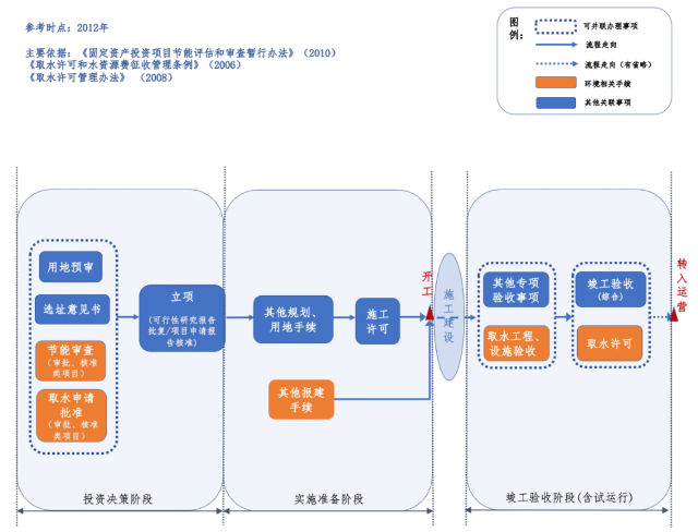 張雪飛 伍迪 摘要:對于特定行業或特殊性質的基礎設施項目,在項目開工前除了需辦理立項、土地、規劃、環境、建設施工等方面的“常規”手續外,還需要根據項目具體情況依法合規辦理節能審查、取水申請批準、海域使用權、外商投資項目安全審查等重要專項手續。部分項目在竣工后、運營前還需辦理取水許可、電信業務經營許可等專項手續。本部分研究重點關注這些特定行業或特殊性質基礎設施項目的重要專項手續,對這些專項手續的主要內容和制度演進進行系統梳理,本文為本部分研究的上篇,重點聚焦節能審查和取水許可等相關內容,供業界參考。 關鍵詞:基礎設施;合規性;節能審查;取水許可;政策演進 2016年,國務院發布《關于印發清理規范投資項目報建審批事項實施方案的通知》(國發〔2016〕29號),是簡化整合投資項目報建手續工作的重要部署。該通知明確,投資項目在可行性研究報告批復或申請報告核準之后、開工建設之前,由相關部門和單位依據法律法規向項目單位作出的行政審批事項由此前的65項報建審批事項歸并減少為42項,精簡后的事項仍然包括發展改革部門負責的節能審查意見、水利部門負責的取水許可、自然資源部門(原海洋部門)負責的海域使用權證書核發、安全部門負責的涉及國家安全事項的建設項目審批等。本文以節能審查、取水許可為例,簡要闡述特定行業領域需要辦理專項手續的歷史沿革及合規性要點。 一、節能審查 (一)內涵與適用范圍 我國固定資產投資項目數量龐大、涉及領域廣,在經濟社會發展中占據重要地位,同時是全社會能源消費增量的主要來源之一。節能審查制度是促進固定資產投資項目科學合理利用能源、提高能源利用效率的源頭性舉措,也是遏制高耗能高排放低水平項目盲目發展的重要抓手。根據2018年最新修訂的《中華人民共和國節約能源法》(以下簡稱《節約能源法》),國家實行固定資產投資項目節能評估和審查制度。不符合強制性節能標準的項目,建設單位不得開工建設;已經建成的,不得投入生產、使用。政府投資項目不符合強制性節能標準的,依法負責項目審批的機關不得批準建設。節能評估,是指根據節能法規、標準,對固定資產投資項目的能源利用是否科學合理進行分析評估,并編制節能評估報告書、節能評估報告表等節能評估文件或填寫節能登記表的行為。節能審查,是指根據節能法律法規、政策標準等,對項目節能評估文件進行審查并形成審查意見,或對節能登記表進行登記備案的行為。節能審查意見是固定資產投資項目開工建設、竣工驗收和運營管理的重要依據。 審批時點要求。根據國家發展改革委最新修訂的《固定資產投資項目節能審查辦法》(2023年6月1日起施行)。政府投資項目,建設單位在報送項目可行性研究報告前,需取得節能審查機關出具的節能審查意見。企業投資項目,建設單位需在開工建設前取得節能審查機關出具的節能審查意見。未按規定進行節能審查,或節能審查未通過的項目,建設單位不得開工建設,已經建成的不得投入生產、使用。 能耗標準和審查機構。固定資產投資項目節能審查由地方節能審查機關負責。(1)年綜合能源消費量(建設地點、主要生產工藝和設備未改變的改建項目按照建成投產后年綜合能源消費增量計算,其他項目按照建成投產后年綜合能源消費量計算,電力折算系數按當量值,下同)10000噸標準煤及以上的固定資產投資項目,其節能審查由省級節能審查機關負責。(2)年綜合能源消費量不滿1000噸標準煤且年電力消費量不滿500萬千瓦時的固定資產投資項目,涉及國家秘密的固定資產投資項目以及用能工藝簡單、節能潛力小的行業的固定資產投資項目,可不單獨編制節能報告。節能審查機關對項目不再單獨進行節能審查,不再出具節能審查意見。(3)其他固定資產投資項目,其節能審查管理權限由省級節能審查機關依據實際情況自行決定。 節能審查要點。建設單位應按照《固定資產投資項目節能審查辦法》等相關要求編制節能報告。節能審查機關受理節能報告后,應委托具備技術能力的機構進行評審,形成評審意見,作為節能審查的重要依據。節能審查機關審查事項包括:項目是否符合節能有關法律法規、標準規范、政策要求;項目用能分析是否客觀準確,方法是否科學,結論是否準確;項目節能措施是否合理可行;項目的能效水平、能源消費等相關數據核算是否準確,是否滿足本地區節能工作管理要求等。 節能審查意見有效期。節能審查意見自印發之日起2年內有效,逾期未開工建設或建成時間超過節能報告中預計建成時間2年以上的項目應重新進行節能審查。 (二)歷史沿革與合規性要點 1997年,《節約能源法》通過立法,規定固定資產投資工程項目的可行性研究報告,應當包括合理用能的專題論證。固定資產投資工程項目的設計和建設,應當遵守合理用能標準和節能設計規范。達不到合理用能標準和節能設計規范要求的項目,依法審批的機關不得批準建設;項目建成后,達不到合理用能標準和節能設計規范要求的,不予驗收。 1. 2006年至2016年 節能審查制度于2006年開始逐步建立。在深入貫徹落實科學發展觀、加快建設節約型社會的政策背景下,2006年,國務院出臺了《關于加強節能工作的決定》,要求建立固定資產投資項目節能評估和審查制