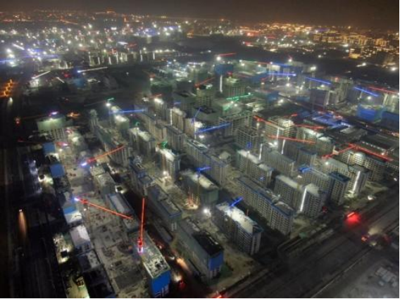 項目區位圖 為確保百姓按期入住,項目組樹牢“今日再晚也是早,明日再早也是晚”的效率意識,全員駐場辦公,與業主同吃同住,協調設計單位同步開展工作,全力打響“5+2”“白加黑”攻堅戰。經現場勘察及多次座談研討,項目組不僅完成市場預測、地價測算、運營財務分析等研究工作,更創新性打造“購買+補助+自行運營”建設模式,同時協助業主簽署土地購買協議、政府購買協議等文件,獲得委托方高度認可。 雄安安置房——夜幕下的燈火通明