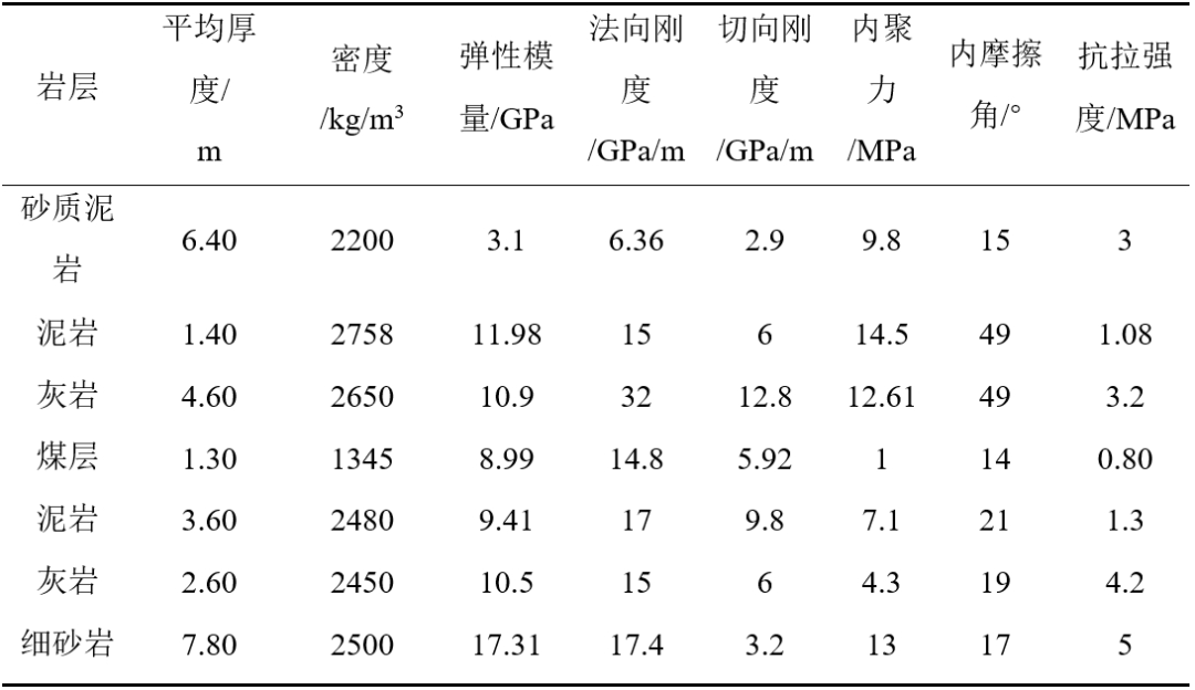 薄煤層開采沿空留巷關(guān)鍵技術(shù)研究 趙法森 吳城樂 林科文 劉飛翔 摘 要:為了確定堅硬頂板下薄煤層沿空留巷切頂鉆孔爆破參數(shù)及圍巖控制方案,以山東某礦21602工作面運輸巷為工程背景,運用理論分析、數(shù)值模擬及現(xiàn)場實測的手段進行了研究。論文將沿空留巷劃分為三個階段,并基于計算結(jié)果給出了相應(yīng)的巷道圍巖支護方案。現(xiàn)場應(yīng)用結(jié)果表明:合理的鉆孔爆破高度為4.5m,切頂角度為70°;現(xiàn)場實施爆破后,留巷穩(wěn)定后頂板累計變形量為118mm,底板累計變形量為344mm,實體煤側(cè)累計變形量為402mm,能滿足留巷后期使用要求。相關(guān)研究成果已在21602工作面進行了現(xiàn)場應(yīng)用,為同等條件下實施沿空留巷提供了借鑒。 關(guān)鍵詞:切頂留巷;薄煤層;堅硬頂板;巷道圍巖控制 傳統(tǒng)的留設(shè)煤柱開采方式不僅在經(jīng)濟方面不占任何優(yōu)勢,還造成大量煤炭資源浪費,由于所留設(shè)的煤柱往往出現(xiàn)應(yīng)力集中現(xiàn)象,引起巷道圍巖變形破壞,不利于巷道的維護使用[1-4]。因此,沿空留巷技術(shù)是解決上述問題的主要方式之一。沿空留巷取消了煤柱,提高了礦井的回采率[5-8],延長了礦井的服務(wù)年限,大幅度降低掘進率,緩解采掘接替矛盾。相關(guān)數(shù)據(jù)表明,沿空留巷可提高煤炭回收率10%以上,巷道掘進率可降低30%左右,明顯改善采掘接續(xù)關(guān)系[9-10]。切頂卸壓沿空留巷技術(shù)具有工藝簡單、性價比高、留巷速度快的優(yōu)點,尤其對堅硬頂板下沿空留巷具有明顯的優(yōu)越性[11]。 山東某礦主采平均厚度為1.35m的16#煤層,其直接頂為普氏系數(shù)大于8、平均厚度4.6m的堅硬灰?guī)r。為盡可能回收堅硬煤層下薄煤層的煤炭資源并緩解采掘接續(xù)緊張問題,采用爆破切頂沿空留巷技術(shù)來提高煤炭資源的回收率。以21602工作面運輸巷為工程背景,采用數(shù)值模擬以及現(xiàn)場監(jiān)測相結(jié)合的研究手段,確定了爆破切頂、巷道圍巖穩(wěn)定性控制等關(guān)鍵技術(shù)參數(shù)并在現(xiàn)場進行了成功應(yīng)用。 一、工程概況 山東某礦21602工作面主采16#煤層,煤層平均厚度為1.35m,平均傾角為4°,平均埋深535m。該工作面走向長度為233m,傾斜長度為200m,采用綜合機械化開采。煤層及頂?shù)装鍘r性詳細情況見表1,直接頂和基本頂為堅硬灰?guī)r,厚度3.5-5.8m,硬度系數(shù)f=8~10。 表1 21602工作面主要圍巖情況 為緩解工作面采掘接替緊張,對21602工作面運輸巷部分區(qū)段進行沿空留巷作業(yè),將其作為21606工作面材料巷,沿空留巷區(qū)段如圖1所示。運輸巷沿煤層頂板掘進,為半煤巖巷道,巷道斷面為矩形,凈高4m,凈寬2.6m。 圖1 工作面布置平面圖 工作面超前未切頂區(qū),巷道頂板穩(wěn)定性良好,根據(jù)工作面以往巷道實際來壓情況及支護設(shè)計[12-13],確定21602運輸巷工作面超前未切頂區(qū)巷道支護形式為“錨桿+六角菱形網(wǎng)”支護方式。其具體支護參數(shù)為:頂部錨桿為兩排螺紋錨桿,規(guī)格為φ20×2000mm,頂板錨桿間排距為:1400×1500mm;幫部錨桿為金屬螺紋錨桿,規(guī)格為φ16×1600mm,幫部錨桿間排距為:1000×1200mm,并掛六角菱形網(wǎng)支護;錨桿托盤規(guī)格為:100×100×10mm。 二、21602工作面運輸巷切頂留巷關(guān)鍵技術(shù)參數(shù)確定 (一)理論分析 1.切頂高度計算 在無煤柱沿空留巷過程中,巷道圍巖的穩(wěn)定受到多種因素的綜合影響,其中切頂高度對沿空留巷的礦壓顯現(xiàn)具有非常顯著的影響[14-15]。切頂高度應(yīng)綜合考慮上覆堅硬頂板的結(jié)構(gòu)與高位巖層的破斷運移特征,保證難垮落頂板在采動應(yīng)力作用下順利沿切頂弱面切落。切頂高度的計算過程具體如下[16]: 假設(shè)切頂高度范圍內(nèi)有i層巖層,巖層編號自下向上依次為1、2、…、i,則: 式(1)可表示為: 已知: 則有: 式中,hq為切頂高度,m;H1…Hj為1…j層頂板巖層厚度(Hj為第j層頂板巖層厚度),m;M為采高,取1.35m;k1…ki 為1…i層頂板巖層碎脹系數(shù)(ki為第i層頂板巖層碎脹系數(shù));kp為加權(quán)平均碎脹系數(shù),取1.3~1.4;代入式(4),可得最合適的切頂高度應(yīng)為3.4~4.5m。 2.切頂角度分析 將切頂角度α定義為切頂與水平方向的夾角,切頂角度的大小對沿空留巷的圍巖穩(wěn)定和頂板下沉量的控制有一定的影響,切頂與水平方向角度越小( ),側(cè)向懸臂附加應(yīng)力越大,同時斷裂面下采空區(qū)的充填效果差,巷道頂板易出現(xiàn)較大旋轉(zhuǎn)變形;切頂與水平方向角度越大( ),會對爆破線附近的錨桿索產(chǎn)生擾動破壞,不利于巷道穩(wěn)定[17]。因此,最合適的切頂角度應(yīng)在70°至90°之間。 (二)數(shù)值模擬及參數(shù)選擇 1.模型構(gòu)建 本模型以21602工作面地質(zhì)生產(chǎn)條件為背景,建立沿空留巷FLAC3D數(shù)值計算模型。模型尺寸為長×寬×高=200m×140m×62.6m,模型四周約束水平位移,底部約束水平和垂直位移,頂部施加均布載荷。載荷的大小為模型頂部巖層的重量,100m深巖石自重取2.6MPa,施加均布載荷的大小為12.3MPa,模型單元采用Mohr-Coulomb本構(gòu)模型,各巖層厚度及基本物理力學參數(shù)見表2。模擬巷道開挖尺寸為200m×4m×2.6m,工作面開挖尺寸為50m×80m×1.35m,在模型中需要切頂?shù)膮^(qū)域賦予空模型,以達到模擬中的切頂效果。待工作面開采后,