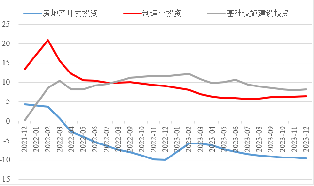 2023年,面對世界經(jīng)濟復蘇乏力、國內(nèi)自然災害頻發(fā)、改革發(fā)展穩(wěn)定任務艱巨等多重挑戰(zhàn),我國經(jīng)濟回升向好,經(jīng)濟轉(zhuǎn)型升級深入推進。投資對優(yōu)化供給結(jié)構(gòu)的關鍵作用更加凸顯,制造業(yè)投資持續(xù)向好,高技術產(chǎn)業(yè)投資占比穩(wěn)步提高。同時,房地產(chǎn)投資仍未見底、民營經(jīng)濟發(fā)展面臨較大壓力、地方政府債務擴展及外溢風險等突出問題制約投資持續(xù)穩(wěn)定增長。做好2024年投資促進工作,需積極擴大有效益的投資,多舉措激發(fā)民間投資內(nèi)生動力,全力穩(wěn)定房地產(chǎn)投資預期,適度增加地方政府專項債券規(guī)模,加大重點領域補短板投資。 一、2023年整體投資增速有所放緩 2023年,我國固定資產(chǎn)投資(不含農(nóng)戶)同比增長3%,增速較上年下降2.1個百分點,較前三季度、上半年、一季度分別下降0.1個、0.8個、2.1個百分點,固定資產(chǎn)投資增速逐季放緩。1—11月,建安工程、設備工器具購置、其他費用分別增長2.1%、6.7%、3.1%,建安工程投資增速明顯低于設備工器具購置投資增速,說明房屋、建筑物和設備裝置安裝等投資的活躍程度有所下降,體現(xiàn)技術水平的設備工器具投入增長加快。 圖1 全國固定資產(chǎn)投資增速(%) 數(shù)據(jù)來源:國家統(tǒng)計局 (一)民間投資動力不足。2023年,新冠疫情防控平穩(wěn)轉(zhuǎn)段,疫情產(chǎn)生的“疤痕效應”仍待消除,需求收縮、供給沖擊、預期轉(zhuǎn)弱三重壓力尚在,民營企業(yè)面臨市場競爭加劇、利潤率下降、轉(zhuǎn)型升級難度增大、融資難融資貴等突出困難。全年民間固定資產(chǎn)投資253544億元,同比下降0.4%,較上年低了1.3個百分點,低于投資整體增速3.4個百分點。截至2023年12月底,我國民間固定資產(chǎn)投資已連續(xù)8個月負增長,民間固定資產(chǎn)投資占比連續(xù)7個月下降,跌至2011年以來的最低點,僅為50.4%,民間投資信心有待進一步提振。 圖2 民間投資增速及占比(%) 數(shù)據(jù)來源:國家統(tǒng)計局,Wind數(shù)據(jù)庫 (二)制造業(yè)投資保持較高韌性,房地產(chǎn)投資持續(xù)低迷。在中央預算內(nèi)投資、地方政府專項債等資金的引導帶動下,基礎設施和制造業(yè)投資支撐作用更加顯著。2023年,中咨公司累計運行項目8421項,其中基礎設施投資與制造業(yè)投資項目占比近8成。我國計劃總投資億元及以上項目投資同比增長9.3%,拉動全部投資增長4.8個百分點,大項目投資帶動作用明顯。2023年,基礎設施投資同比增長8.24%,高于整體投資5.24個百分點,較2019年高了4.91個百分點。其中,鐵路運輸業(yè)投資、水利管理業(yè)投資分別增長25.2%、5.2%。制造業(yè)投資同比增長6.5%,高于整體投資增速3.5個百分點,較2019年高了3.4個百分點。制造業(yè)投資仍保持較高韌性,傳統(tǒng)產(chǎn)業(yè)高端化綠色化智能化轉(zhuǎn)型加快,電氣機械和器材制造業(yè)、汽車制造業(yè)投資分別增長32.2%、19.4%。 表1 1—12月我國各行業(yè)固定資產(chǎn)投資情況 數(shù)據(jù)來源:國家統(tǒng)計局,Wind數(shù)據(jù)庫 2023年,房地產(chǎn)開發(fā)投資增速持續(xù)放緩,房地產(chǎn)開發(fā)投資、住宅開發(fā)投資分別同比下降9.6%、9.3%。房地產(chǎn)開發(fā)投資占固定資產(chǎn)投資完成額的比重降至22%,較上年下降1.2個百分點,為3年以來最低值。房屋施工面積、房屋新開工面積等先行指標均出現(xiàn)明顯下滑,分別同比下降7.2%、20.4%。1—12月,國房景氣指數(shù)均位于100以下,自4月以來持續(xù)走低。 圖3 三大領域固定資產(chǎn)投資增速(累計同比,%) 數(shù)據(jù)來源:國家統(tǒng)計局,Wind數(shù)據(jù)庫 高技術產(chǎn)業(yè)投資引領帶動作用持續(xù)增強,集成電路、高端芯片、儀器儀表設備等領域關鍵核心技術攻關扎實推進,新能源、人工智能、生物醫(yī)藥等新興產(chǎn)業(yè)發(fā)展加快。2023年我國高技術產(chǎn)業(yè)投資增長10.3%,穩(wěn)投資引領作用持續(xù)顯現(xiàn)。高技術制造業(yè)投資比上年增長9.9%,增速比制造業(yè)投資高3.4個百分點。其中,航空、航天器及設備制造業(yè),計算機及辦公設備制造業(yè),電子及通信設備制造業(yè)投資分別增長18.4%、14.5%、11.1%。高技術服務業(yè)投資比上年增長11.4%,增速比服務業(yè)投資高11個百分點。其中,科技成果轉(zhuǎn)化服務業(yè)、電子商務服務業(yè)投資分別增長31.8%、29.2%。高技術產(chǎn)業(yè)引資能力不斷增強,1—11月高技術產(chǎn)業(yè)引資3866.5億元人民幣,占全國實際使用外資總額的37.2%,較2022年全年提升1.1個百分點。 圖4 高技術產(chǎn)業(yè)投資增速對比整體投資增速(累計同比,%) 數(shù)據(jù)來源:國家統(tǒng)計局,Wind數(shù)據(jù)庫 (三)東部地區(qū)投資保持較快增長,東北地區(qū)投資延續(xù)負增長。今年以來,中咨公司承接31個省市委托的項目中,東部、中部、西部和東北地區(qū)占比分別為43%、16%、36%、5%。2023年,我國東部地區(qū)投資同比增長4.4%,較全國水平高了1.4個百分點;中部、西部地區(qū)投資增速由負轉(zhuǎn)正,分別同比增長0.3%、0.1%;東北地區(qū)投資同比下降1.8%,降幅較前三季度有所收窄。 圖5 分地區(qū)固定資產(chǎn)投資增速(累計同比,%) 數(shù)據(jù)來源:國家統(tǒng)計局,Wind數(shù)據(jù)庫 2023年1—11月,