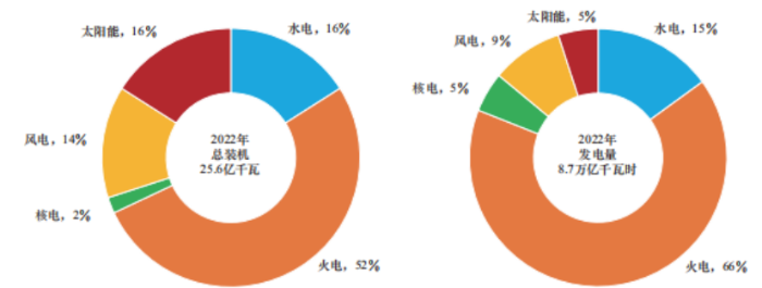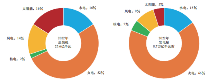 圖1 2022年全國各類電源裝機和發電量占比[3]