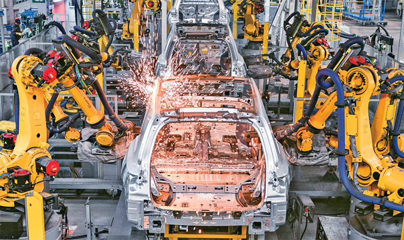 加快發(fā)展新質(zhì)生產(chǎn)力,要推動數(shù)字技術(shù)在先進(jìn)制造業(yè)中的應(yīng)用擴(kuò)散,形成兩者之間相互支撐、相互促進(jìn)的良性循環(huán)。圖為2024年1月10日,在理想汽車常州基地車間,機(jī)械手臂在進(jìn)行焊接作業(yè)。 新華社記者 季春鵬/攝 發(fā)展新質(zhì)生產(chǎn)力要形成新動能。科技創(chuàng)新、產(chǎn)業(yè)創(chuàng)新、企業(yè)創(chuàng)新、市場創(chuàng)新、產(chǎn)品創(chuàng)新、業(yè)態(tài)創(chuàng)新、管理創(chuàng)新等各領(lǐng)域的創(chuàng)新,以及這些創(chuàng)新成果在更大范圍內(nèi)的擴(kuò)散應(yīng)用,共同構(gòu)成了支撐高質(zhì)量發(fā)展的新動能,是新質(zhì)生產(chǎn)力的整體呈現(xiàn)。根據(jù)國家統(tǒng)計(jì)局?jǐn)?shù)據(jù),2022年,我國以新產(chǎn)業(yè)、新業(yè)態(tài)、新商業(yè)模式為核心內(nèi)容的“三新”經(jīng)濟(jì)增加值為210084億元,相當(dāng)于國內(nèi)生產(chǎn)總值的比重為17.36%。2023年全年,規(guī)模以上工業(yè)中裝備制造業(yè)增加值比上年增長6.8%,占規(guī)模以上工業(yè)增加值比重為33.6%;高技術(shù)制造業(yè)增加值增長2.7%,占規(guī)模以上工業(yè)增加值比重為15.7%。新能源汽車產(chǎn)量944.3萬輛,比上年增長30.3%;太陽能電池(光伏電池)產(chǎn)量5.4億千瓦,增長54.0%;服務(wù)機(jī)器人產(chǎn)量783.3萬套,增長23.3%;3D打印設(shè)備產(chǎn)量278.9萬臺,增長36.2%。規(guī)模以上服務(wù)業(yè)中,戰(zhàn)略性新興服務(wù)業(yè)企業(yè)營業(yè)收入比上年增長7.7%。總的看,我國新動能正持續(xù)成長壯大,成為推動高質(zhì)量發(fā)展的重要動力源。 三、加快發(fā)展新質(zhì)生產(chǎn)力,要抓好改造提升傳統(tǒng)產(chǎn)業(yè)、培育壯大新興產(chǎn)業(yè)、超前布局建設(shè)未來產(chǎn)業(yè) 現(xiàn)代化產(chǎn)業(yè)體系是現(xiàn)代化國家的物質(zhì)技術(shù)基礎(chǔ)。習(xí)近平總書記強(qiáng)調(diào):“要及時將科技創(chuàng)新成果應(yīng)用到具體產(chǎn)業(yè)和產(chǎn)業(yè)鏈上,改造提升傳統(tǒng)產(chǎn)業(yè),培育壯大新興產(chǎn)業(yè),超前布局建設(shè)未來產(chǎn)業(yè),加快構(gòu)建以先進(jìn)制造業(yè)為支撐的現(xiàn)代化產(chǎn)業(yè)體系。”這一重要論述指明了加快發(fā)展新質(zhì)生產(chǎn)力的基本路徑。 改造提升傳統(tǒng)產(chǎn)業(yè)。一是推動邁向價值鏈中高端。深入實(shí)施制造業(yè)重大技術(shù)改造升級和大規(guī)模設(shè)備更新工程,加快先進(jìn)適用技術(shù)推廣應(yīng)用。鼓勵面向傳統(tǒng)制造業(yè)重點(diǎn)領(lǐng)域開展關(guān)鍵共性技術(shù)研究和產(chǎn)業(yè)化應(yīng)用示范。完善科技成果信息發(fā)布和共享機(jī)制。推動傳統(tǒng)制造業(yè)優(yōu)勢領(lǐng)域鍛長板,推進(jìn)強(qiáng)鏈延鏈補(bǔ)鏈,加強(qiáng)新技術(shù)新產(chǎn)品創(chuàng)新迭代。支持企業(yè)聚焦基礎(chǔ)零部件、基礎(chǔ)元器件、基礎(chǔ)材料、基礎(chǔ)軟件、基礎(chǔ)工藝和產(chǎn)業(yè)技術(shù)基礎(chǔ)等薄弱領(lǐng)域,加快攻關(guān)突破和產(chǎn)業(yè)化應(yīng)用,強(qiáng)化傳統(tǒng)制造業(yè)基礎(chǔ)支撐體系。實(shí)施卓越質(zhì)量工程。二是加快數(shù)字化、網(wǎng)絡(luò)化、智能化改造。促進(jìn)人工智能、大數(shù)據(jù)等技術(shù)與制造全過程、全要素深度融合,利用數(shù)字技術(shù)對傳統(tǒng)產(chǎn)業(yè)進(jìn)行全方位、全鏈條改造,推動產(chǎn)業(yè)數(shù)字化。支持重點(diǎn)行業(yè)建設(shè)“產(chǎn)業(yè)大腦”,匯聚行業(yè)數(shù)據(jù)資源,推廣共性應(yīng)用場景,服務(wù)全行業(yè)轉(zhuǎn)型升級和治理能力提升。三是強(qiáng)化綠色低碳發(fā)展。加快綠色科技創(chuàng)新和先進(jìn)綠色技術(shù)推廣應(yīng)用,做強(qiáng)綠色制造業(yè),發(fā)展綠色服務(wù)業(yè),壯大綠色能源產(chǎn)業(yè),發(fā)展綠色低碳產(chǎn)業(yè)和供應(yīng)鏈,構(gòu)建綠色低碳循環(huán)經(jīng)濟(jì)體系。制修訂一批低碳、節(jié)能、節(jié)水、資源綜合利用、綠色制造等重點(diǎn)領(lǐng)域標(biāo)準(zhǔn),促進(jìn)資源節(jié)約和材料合理應(yīng)用。持續(xù)優(yōu)化支持綠色低碳發(fā)展的經(jīng)濟(jì)政策工具箱,發(fā)揮綠色金融的牽引作用,打造高效生態(tài)綠色產(chǎn)業(yè)集群。 培育壯大新興產(chǎn)業(yè)。一是強(qiáng)化市場引領(lǐng)作用。加快全國統(tǒng)一大市場建設(shè),著力破除各種形式的地方保護(hù)和市場分割,充分發(fā)揮我國超大規(guī)模國內(nèi)市場優(yōu)勢,持續(xù)擴(kuò)大新興產(chǎn)業(yè)市場空間、豐富應(yīng)用場景,加速新興產(chǎn)業(yè)規(guī)模擴(kuò)容和技術(shù)迭代,推動更多新興產(chǎn)業(yè)發(fā)展壯大為支柱產(chǎn)業(yè)。抓住新能源汽車、鋰電池等新產(chǎn)品快速發(fā)展的有利時機(jī),推動構(gòu)建品牌引領(lǐng)、創(chuàng)新發(fā)展的新的全球產(chǎn)業(yè)鏈。二是加快發(fā)展先進(jìn)制造業(yè)。加快推動數(shù)字技術(shù)在先進(jìn)制造業(yè)中的應(yīng)用擴(kuò)散,形成兩者之間相互支撐、相互促進(jìn)的良性循環(huán)。深入實(shí)施先進(jìn)制造業(yè)集群發(fā)展專項(xiàng)行動,