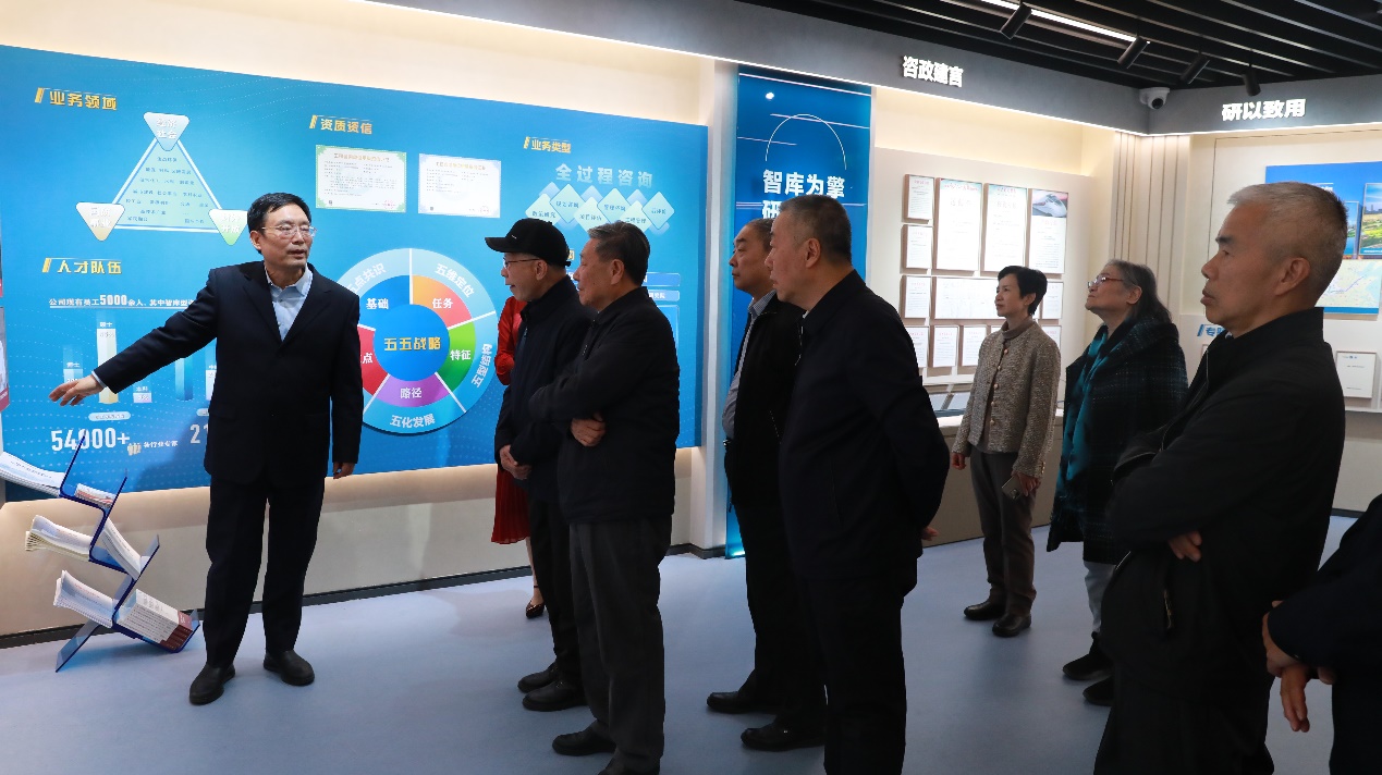 團拜會開始前,茍護生陪同公司老領導參觀公司咨詢成就展。茍護生向老領導們介紹公司改革發展情況,感謝他們長久以來對公司發展的關心支持與親切指導,希望他們今后繼續為公司高質量發展建言獻策。老領導們饒有興致地觀看展館陳設,追憶公司發展歷程,對公司近年來的發展成果給予充分肯定,并為干部職工昂揚奮進的精氣神點贊。