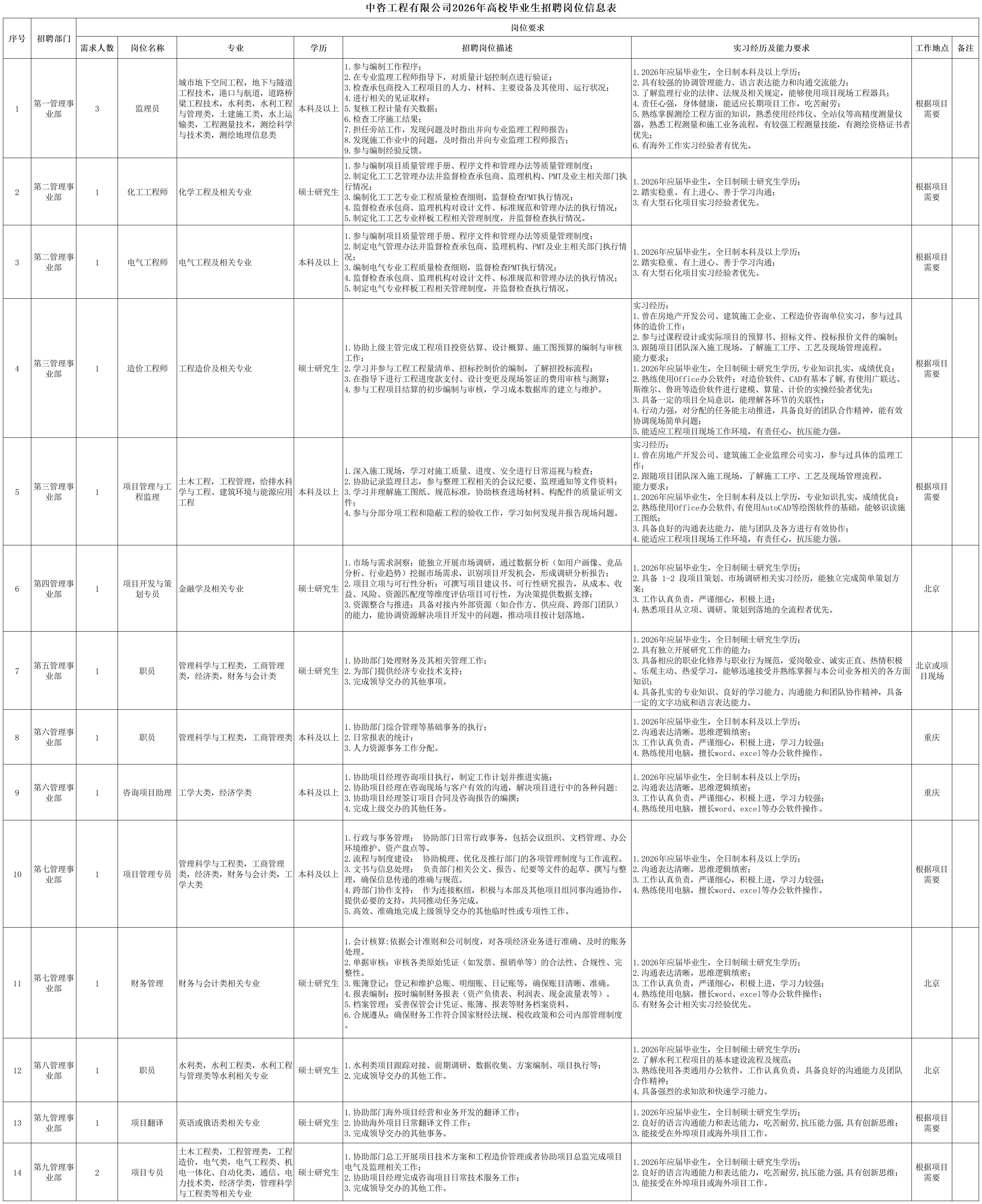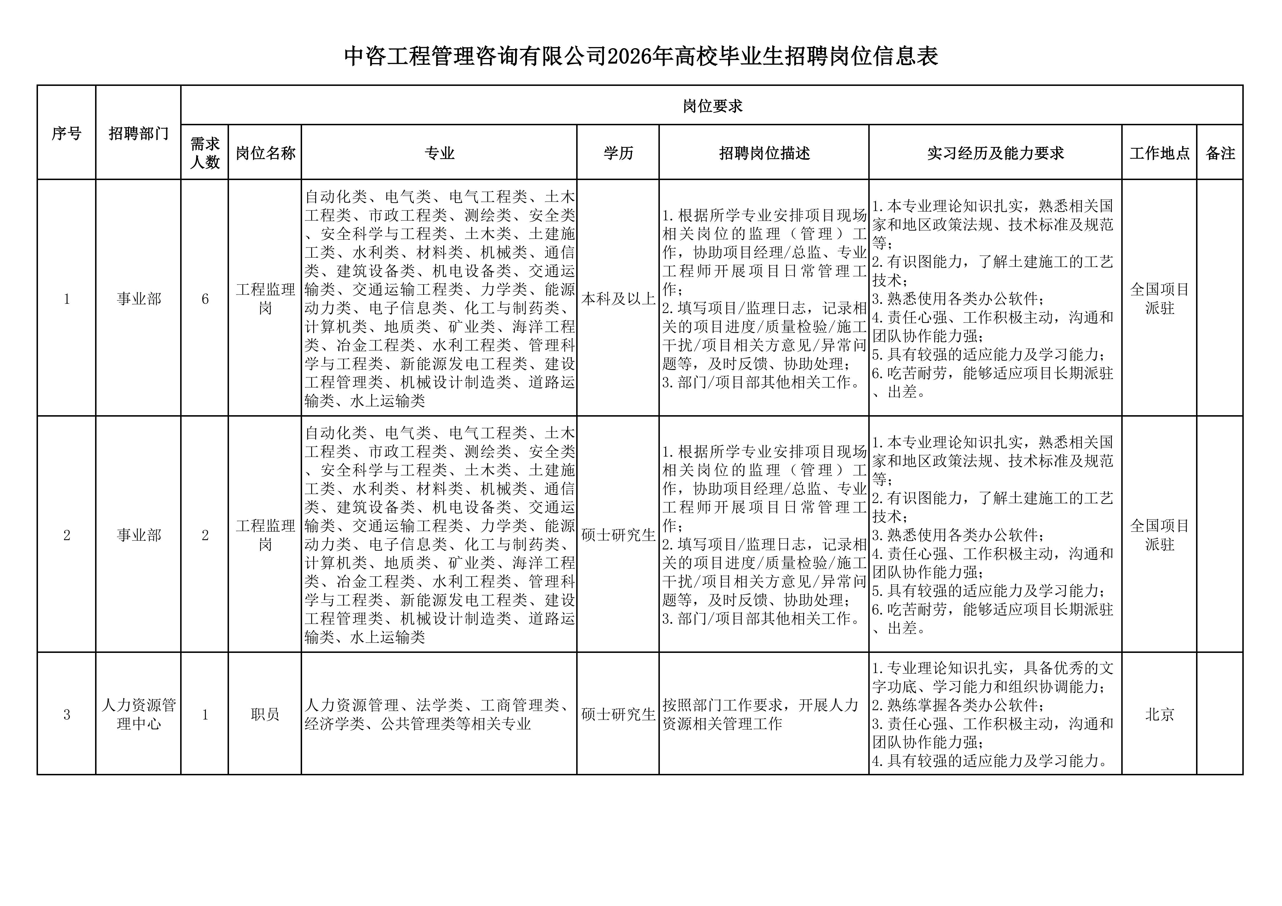 中國國際工程咨詢有限公司所屬企業(yè)2026年校園招聘公告 | ||||