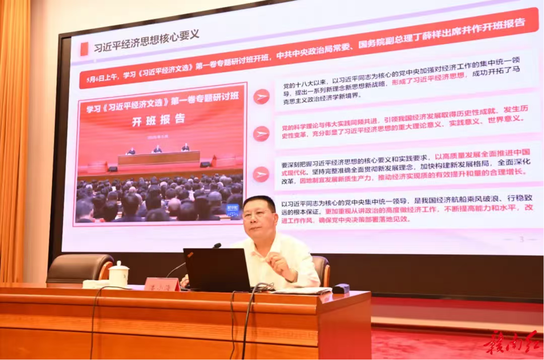 會上,潘小海以《學習貫徹習近平經濟思想,高質量做好“十五五”規劃工作》為題,從新階段新征程、新形勢新挑戰、贛州思考建議等三個方面,闡述了深入領會習近平經濟思想核心要義的重要意義和高質量做好“十五五”規劃工作的方法路徑、意見建議。大家一致認為,報告對標中央精神、聯系贛州實際,既有深刻的理論闡述,又有生動的實踐案例,政治性、思想性、指導性和針對性都很強,要認真學習好、深刻領會好、切實運用好。