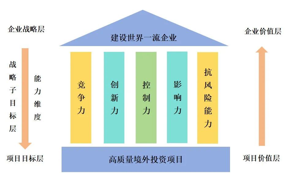 編者按:隨著“雙循環(huán)”戰(zhàn)略、“走出去”戰(zhàn)略和“一帶一路”倡議的深入推進實施,對企業(yè)境外投資開展系統(tǒng)研究,探索如何更高質量地開展境外投資,成為當前一項重要和緊迫的任務。我國擁有堅韌完整的產業(yè)鏈、高效穩(wěn)定的社會治理和廣闊開放的消費市場,有望擔當全球經濟治理的改革者、國際供應鏈的樞紐站、跨國資本技術要素的集納方,以強大的兼容力、吸引力、整合力,為開拓新時代更高水平、更寬領域的國際共贏格局貢獻中國力量。本公眾號將企業(yè)境外投資研究成果以系列文章的形式陸續(xù)刊發(fā),第一至第五部分是關于全球與我國境外投資的情況分析,第六至第八部分從戰(zhàn)略引領、價值創(chuàng)造的視角,以中央企業(yè)為主體,著重探討通過構建“戰(zhàn)略和價值”二維一體的境外投資模式,對境外投資決策進行分析和研判,對境外投資項目進行分類組合與資源配置,培育和壯大中央企業(yè)在特定的某個方面或多個方面可能存在的突出競爭優(yōu)勢。第九部分和第十部分將分別闡述戰(zhàn)略和價值評價的基本方法和“戰(zhàn)略和價值”二維一體境外投資高質量發(fā)展模式的指標體系構建。本文是研究報告的第九部分,供業(yè)界同仁參考。 企業(yè)境外投資系列研究之九: 戰(zhàn)略和價值評價基本方法 楊凱越 本文針對中央企業(yè)的境外投資,構建了從企業(yè)戰(zhàn)略到項目目標、從項目價值到企業(yè)價值的投資模式和路徑,對企業(yè)層和項目層兩個層面進行研究。從而幫助中央企業(yè)更好地理解其特點和優(yōu)勢,指導其境外投資決策和實施。其中,從企業(yè)到項目的研究意味著要從宏觀層面到微觀層面進行分析。在企業(yè)戰(zhàn)略層面,中央企業(yè)的境外投資戰(zhàn)略應該與國家戰(zhàn)略和企業(yè)發(fā)展戰(zhàn)略相一致,考慮國家利益和安全、企業(yè)長期發(fā)展戰(zhàn)略等因素。在項目層面,中央企業(yè)需要考慮投資目標的選擇、投資模式的設計、風險管理、項目執(zhí)行等方面的問題。從項目價值到企業(yè)價值的研究都要關注中央企業(yè)在境外投資過程中的價值創(chuàng)造。這同時涉及企業(yè)整體的戰(zhàn)略目標與境外投資項目之間的契合度,境外投資項目的選擇、決策,境外投資項目群的構建等問題。 圖1 建設世界一流企業(yè)與高質量境外投資項目的戰(zhàn)略-價值關系圖 一、企業(yè)戰(zhàn)略層的評價 (一)企業(yè)戰(zhàn)略層的分解思路 1.企業(yè)戰(zhàn)略層分解的難點 (1)頂層戰(zhàn)略目標可能流于形式 大部分中央企業(yè)都十分重視戰(zhàn)略的制定,一些中央企業(yè)委托咨詢單位協(xié)助其制定公司的戰(zhàn)略規(guī)劃,但在部分企業(yè)中,仍然存在制定好的頂層戰(zhàn)略,未能得到良好地貫徹和實施,戰(zhàn)略目標停留在形式層面的情況。從高層、中層管理者到基層員工,對于制定戰(zhàn)略的背景以及政策了解程度不同,呈現出逐級減弱的態(tài)勢,因而公司管理層和基層員工對于戰(zhàn)略目標的理解以及對于戰(zhàn)略目標的執(zhí)行有著較大差異,同層級中隨著部門的差異化而差異化,隨著層級降低而降低,不能有效形成資源合力。 (2)戰(zhàn)略的模糊性特征可能較難項目化分解 一方面,戰(zhàn)略本身具有模糊特性,將模糊性的戰(zhàn)略定性定量化分解、模糊的戰(zhàn)略項目式分解,對科學性和系統(tǒng)性有較高的要求。另一方面,大部分中央企業(yè)機構龐大,管理層級較多,境外投資項目往往僅屬于中央企業(yè)的某個獨立板塊,將企業(yè)戰(zhàn)略目標和項目戰(zhàn)略目標相匹配,通過項目指標進行戰(zhàn)略管理,可能存在項目戰(zhàn)略目標不能被各層級員工全面理解和執(zhí)行的情況。 2.戰(zhàn)略分解的要點 (1)完成企業(yè)戰(zhàn)略目標向境外投資項目戰(zhàn)略目標的細分 戰(zhàn)略的執(zhí)行需要將模糊、長遠的發(fā)展愿景、發(fā)展目標,轉變?yōu)榫哂锌刹僮餍缘碾A段性目標和舉措。在實踐過程中,中央企業(yè)必須將已經制定的長期發(fā)展目標與短期的行動目標、獨立的境外投資項目目標、各層級與涉及個體的責任相統(tǒng)一相結合,將總體戰(zhàn)略細化落實到各個項目和各崗位員工的工作任務中。在戰(zhàn)略執(zhí)行過程中,要構建較為全面、科學的戰(zhàn)略控制系統(tǒng)。針對戰(zhàn)略規(guī)劃,各層級單位及部門所承擔的目標及具體任務需要設定清晰的指導和指標,對項目部和員工個人的細分任務落實情況對照考核,從而確保企業(yè)總體戰(zhàn)略得到系統(tǒng)性的落實。 (2)完成關鍵指標的設置 在設計指標權重時,應考慮中央企業(yè)在不同階段的發(fā)展重點,以及其所處行業(yè)、性質(保障類、商業(yè)類等),根據企業(yè)實際情況的變化而及時變更指標,權重分配應能夠引導項目對相匹配的企業(yè)戰(zhàn)略的完成。大致應遵循以下原則: 1)平衡分布 一般而言,每個方面指標的權重應平衡,不能過高或過低。如果某一方面指標的權重過高,則可能導致高權重指標在工作中被過度關注,而忽視其他低權重指標;如果權重過低,指標極易被忽略,評價中也就失去了它的價值。為了便于計算和比較,指標權重一般設置為5%的整數倍,最小為5%。 2)戰(zhàn)略導向 指標的權重設計要能夠體現