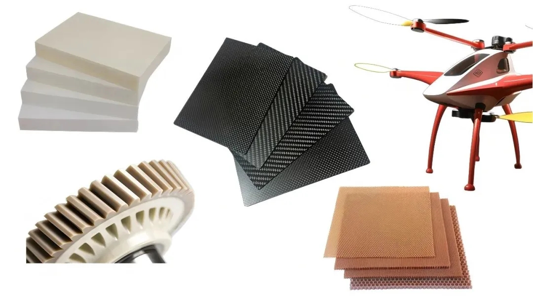 機(jī)身輕量化材料性能是決定低空飛行器續(xù)航能力和載荷效率的關(guān)鍵。代表性材料有:碳纖維復(fù)合材料(CFRP),用于機(jī)身結(jié)構(gòu)、機(jī)翼、旋翼;玻璃纖維復(fù)合材料(GFRP),應(yīng)用于機(jī)身結(jié)構(gòu)和推進(jìn)系統(tǒng);聚甲基丙烯酰亞胺(PMI)、聚酰亞胺(PI)泡沫材料,用于無人機(jī)槳葉夾芯材料,可在減重同時保持結(jié)構(gòu)剛度;芳綸蜂窩材料兼顧強(qiáng)度、彈性與模量,用于電池艙、機(jī)身碰撞防護(hù)、減震降噪等。
